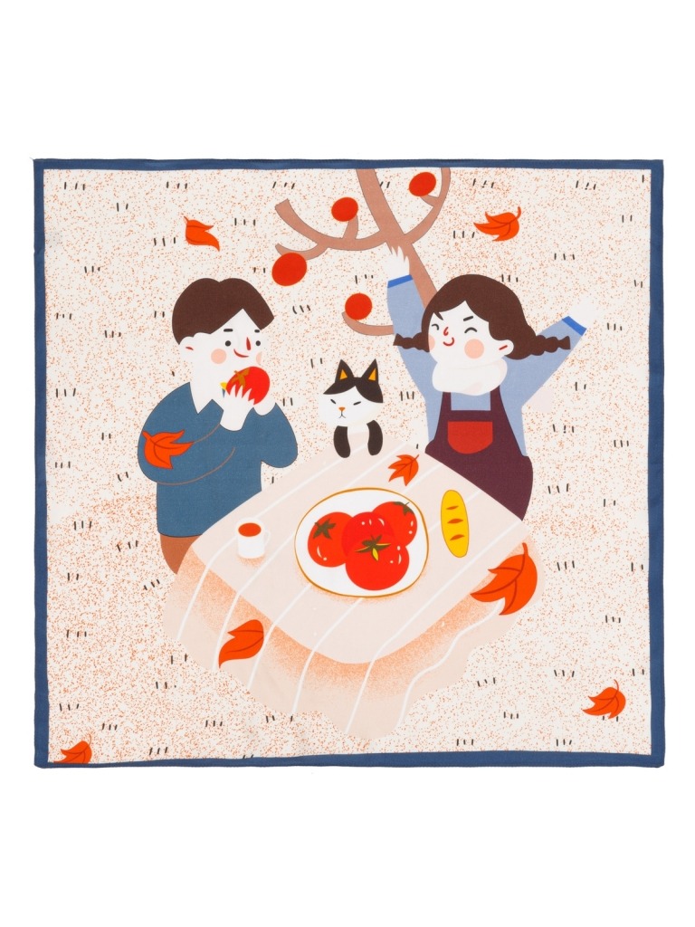 Платок с принтом из 100% шёлка. Тип плетения: Сатин. Размер: 53х53 см. Ручная подгибка.