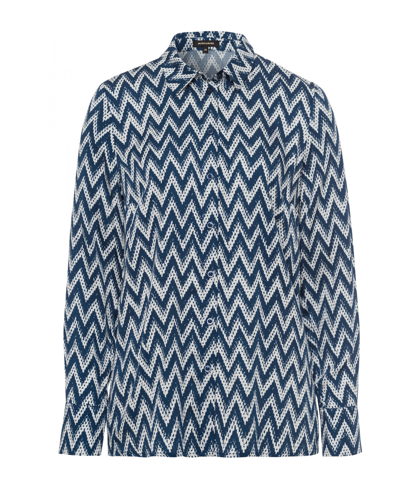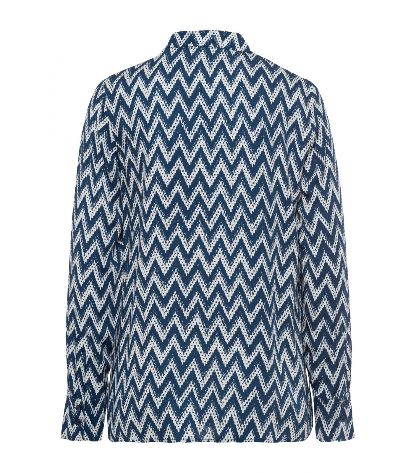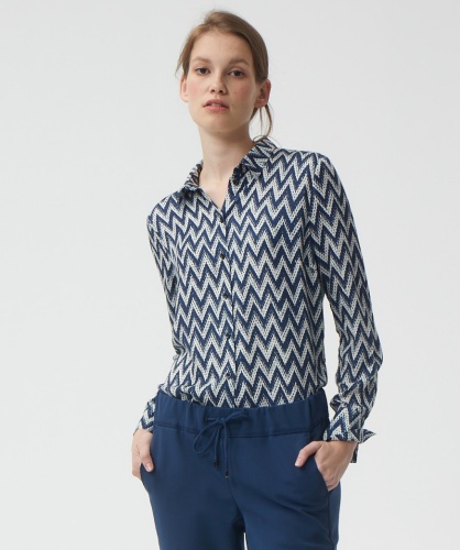 Повседневная рубашка с зигзагообразным принтом. 100% вискоза обеспечивает комфортное ношение. Втачной рука полной длины с манжетом на пуговице. Рубашечный воротник.