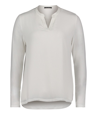 Белая блуза - необходимый элемент базового гардероба. Прямой покрой, V-образный вырез горловины, длинные рукава. Материал из вискозной смеси приятен к телу и обеспечивает комфорт. Эта простая элегантная модель является отличным компаньоном как для брюк, так и для юбки.
