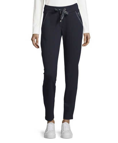 Быть спортивным - модно! А помогут в этом брюки в спортивом стиле. Прямой крой, средняя посадка, кулиска на талии. Карманы декорированы тесьмой. Материал из смеси вискозы, полиэстера и эластана приятен к телу и обеспечивает свободу движений. Эти брюки идеально подходят для прогулок и занятий спортом.