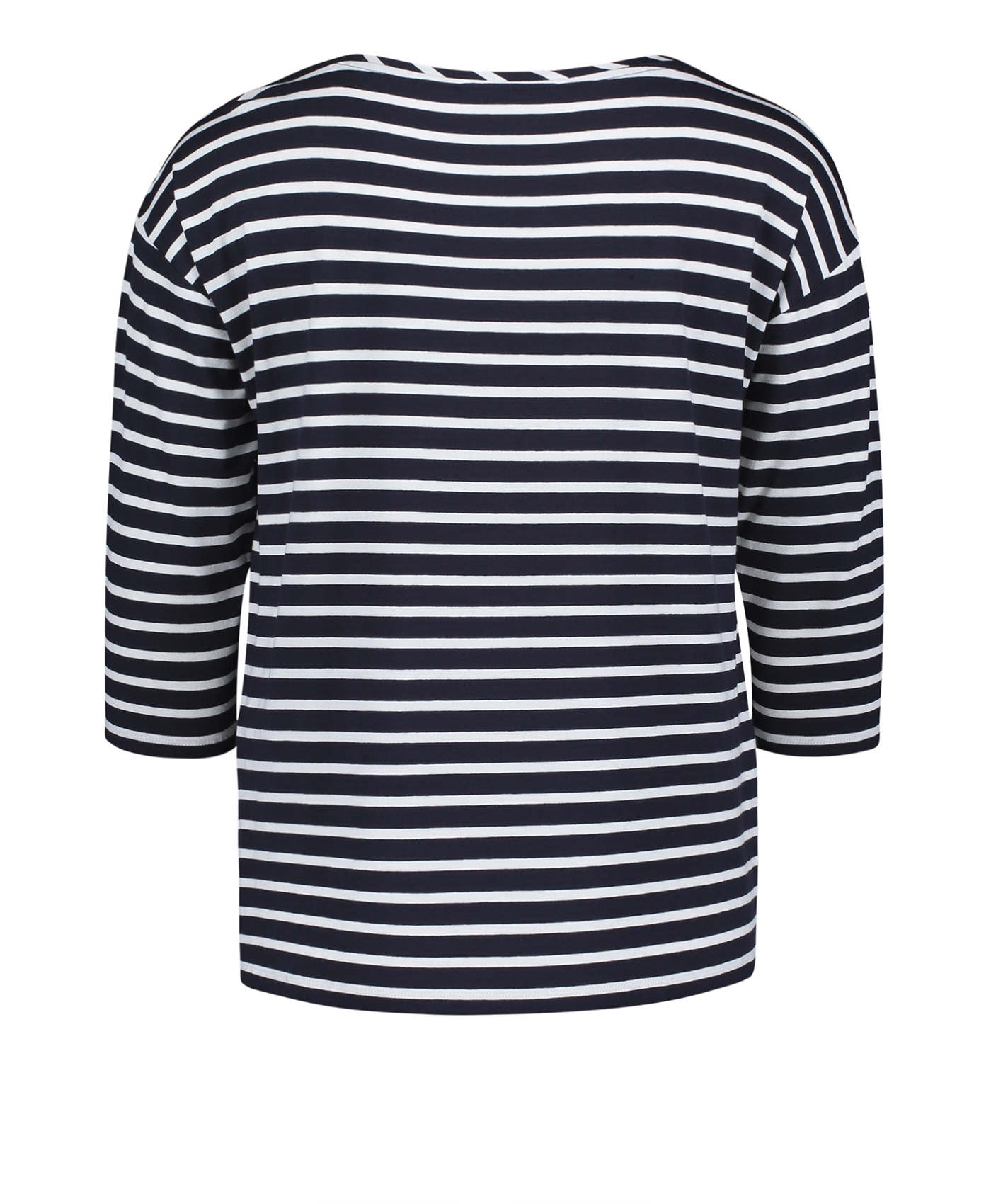 Стиль на каждый день! Полосатый дизайн - излюбленный выбор французских модниц. Футболка прямого покроя. Рукава 3/4 со спущенным плечом. На передней части футболки - металлизированный принт с надписью "Happy". Материал из хлопковой смеси приятен к телу и обеспечивает комфорт. Эта футболка - отличный вариант верха для образа в стиле кэжуал.
