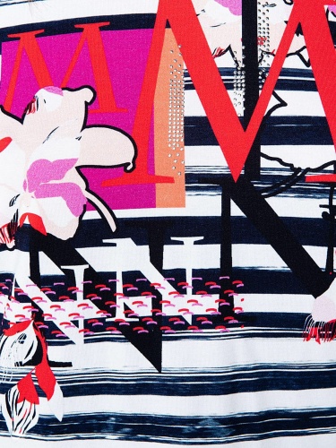Полосатый дизайн и тропические цветы - то, что нужно для летнего образа! С брюками или с юбкой - эта футболка одинаково удачно выражает индивидуальность своей обладательницы. Приятный к телу материал из смеси вискозы и эластана гарантирует отличную посадку, а рукав 3/4 придает образу легкость и непринужденность. Длина изделия по спинке - 62 см.