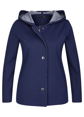 Блейзер - базовая модель женского гардероба. Трендовый темно-синий цвет универсален и сочетается с любыми оттенками. Материал из смеси полиэстера, вискозы и эластана обеспечивает отличную посадку и легок в уходе. Капюшон, скрытый замок и планка с кнопками обеспечивают тепло и комфорт. Отличный выбор для создания современного образа!