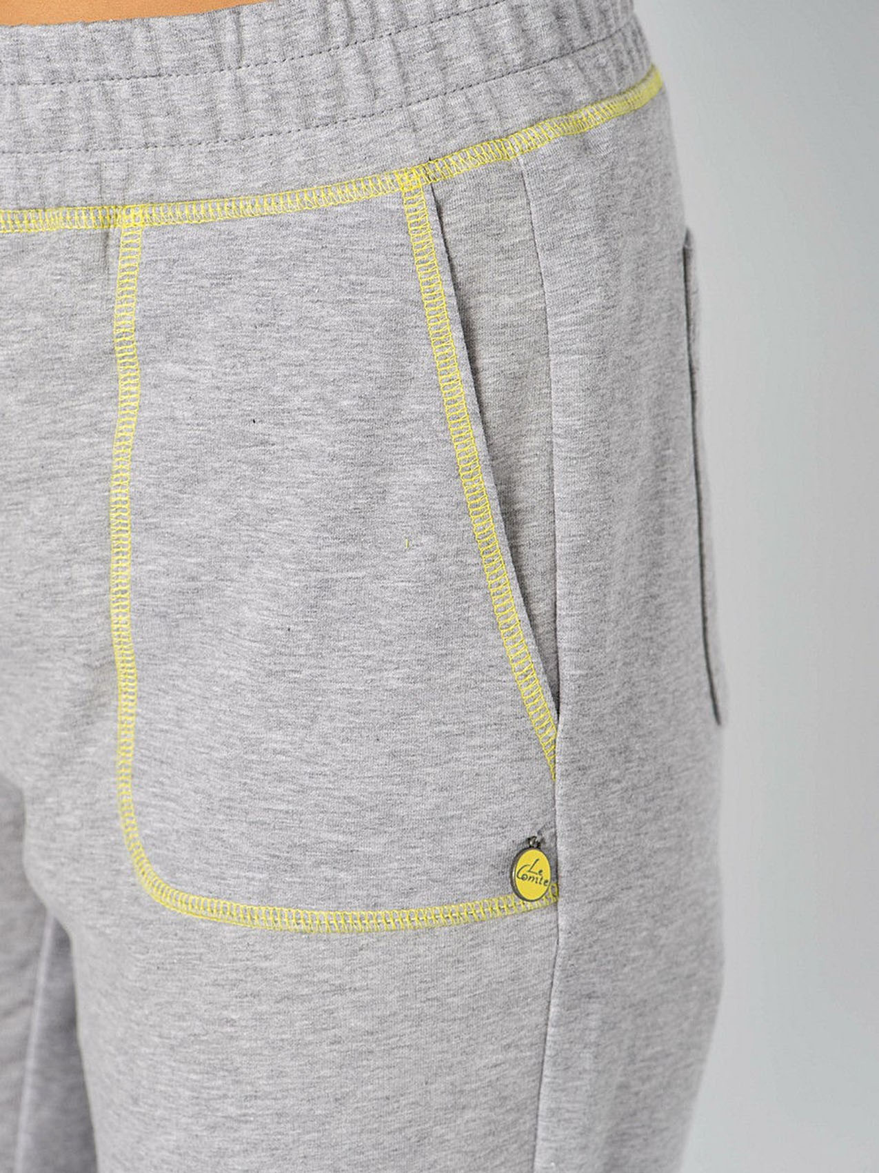 Укороченные спортивные брюки без утепления. Средняя посадка. Эластичная лента на поясе. Прорезные карманы. Яркая декоративная отстрочка. Приятный к телу материал из смеси хлопка и эластана. Длина изделия по внутреннему шву: 73 см.