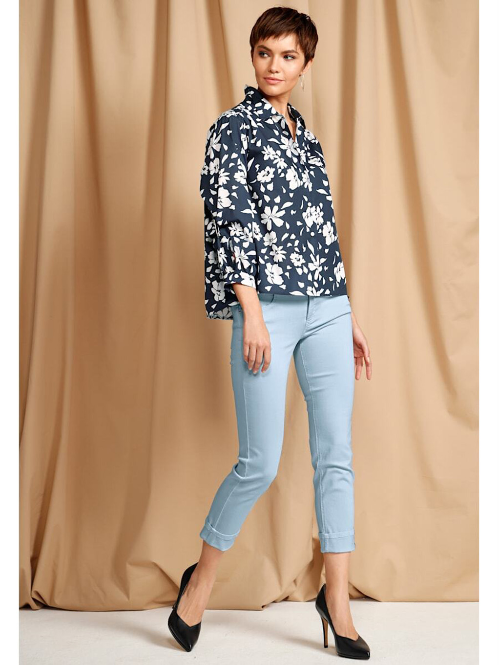 Укороченные брюки светлого оттенка - отличный летний выбор! Средняя посадка, силуэт slim подчеркивает стройные ноги. Застежка-молния спереди, карманы. Приятный к телу материал из хлопковой смеси обеспечивает комфорт. Эта лаконичная модель гарантирует создание бесчисленного множества модных комплектов.