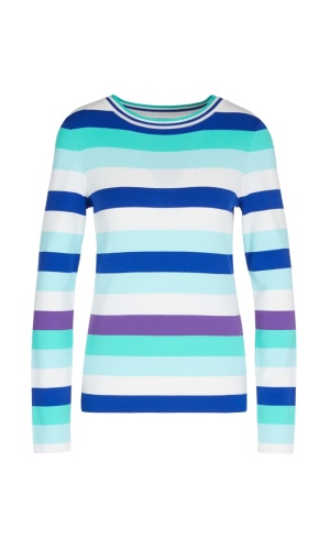 Джемпер в полоску слегка приталенного силуэта. Круглый вырез горловины с обтачкой, рукава полной длины.