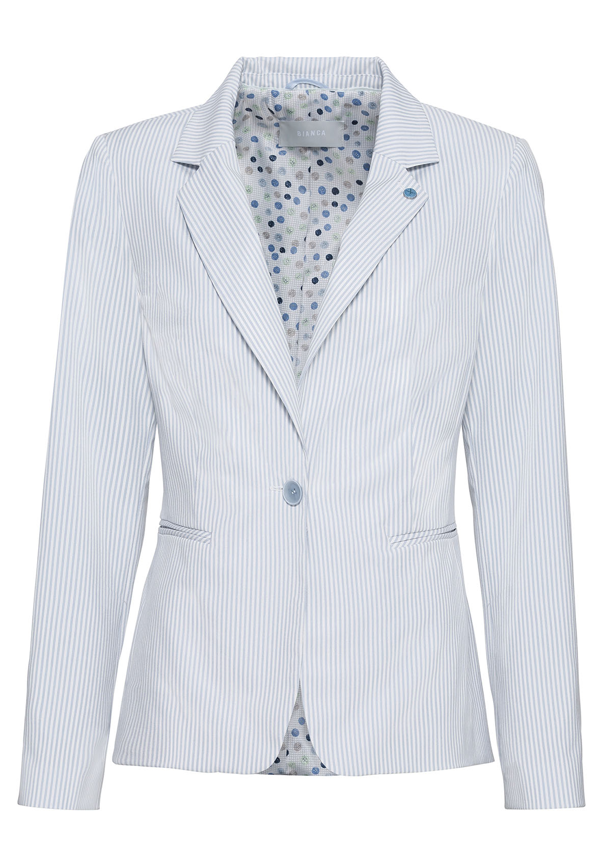 Стильный жакет Mandy станет изюминкой любого гардероба! Жакет на подкладке очень удобен в ношении благодаря высококачественной смеси вискозы и эластана. Модный образ создается за счет трендового принта в полоску и слегка приталенного силуэта. Модные детали - карманы, застежка на пуговицах и стильный воротник с лацканами - прекрасно дополнят наряд. • стильный жакет на подкладке с принтом в полоску • высококачественная смесь вискозы и эластана • воротник с лацканами, карманы, застежка на пуговице • слегка приталенный силуэт • длина около 64 см