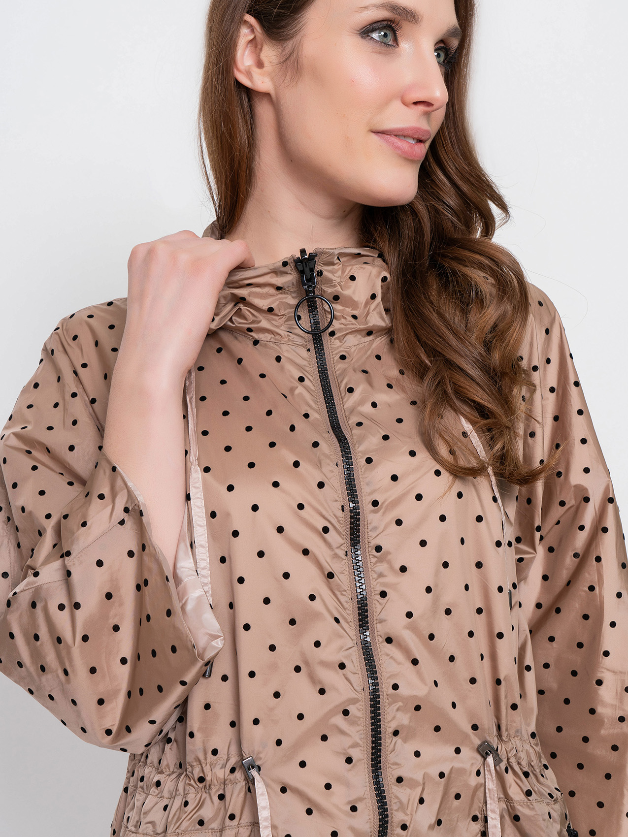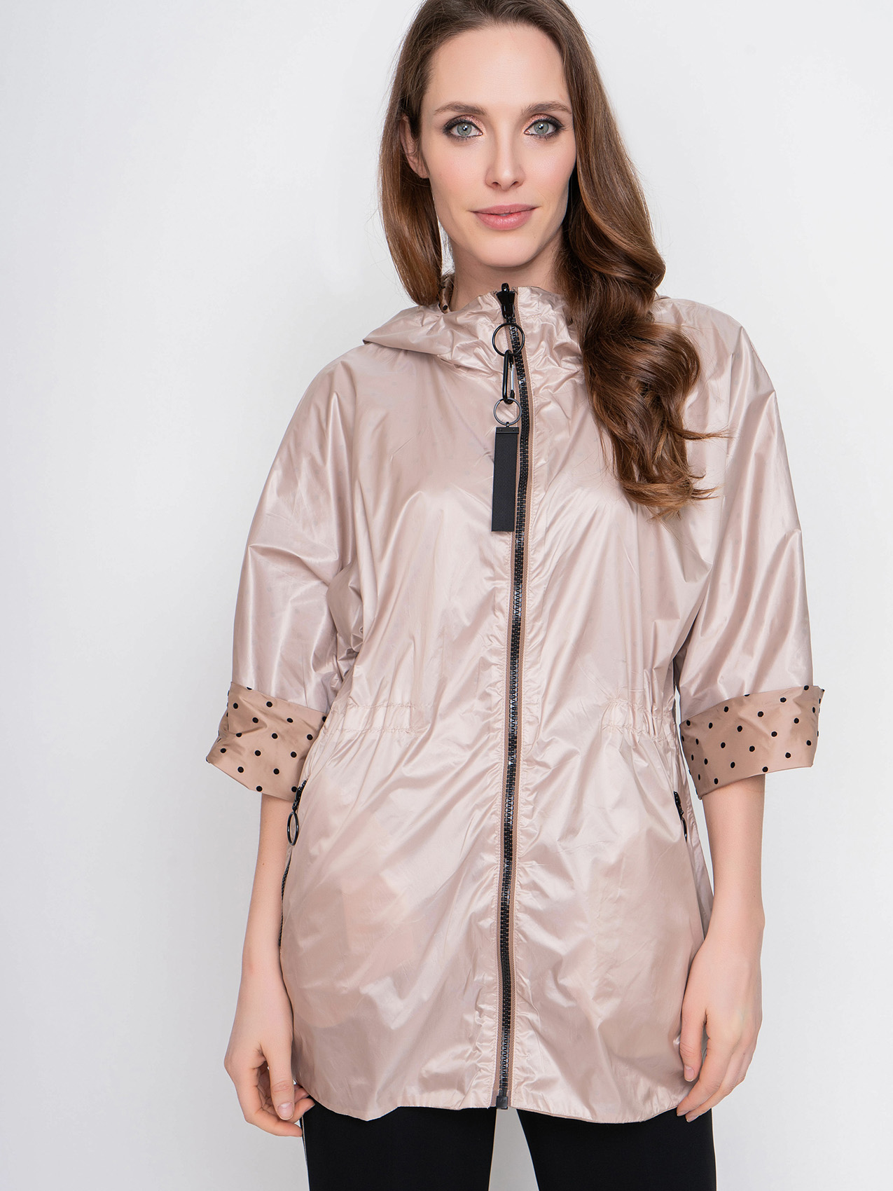 Стильный плащ - необходимая вещь в дождливую погоду. Плащ прямого кроя с кулиской на талии, капюшон на кулиске, застежка-молния, укороченные цельнокроеные рукава, карманы с лицевой и изнаночной стороны плаща. Двусторонний плащ можно носить на любую сторону, в зависимости от вашего настроения и выбора остальных элементов модного образа.