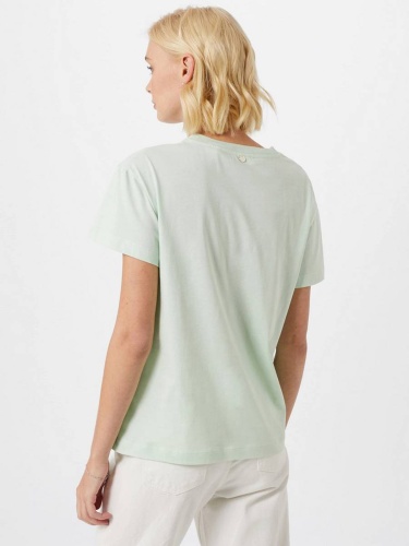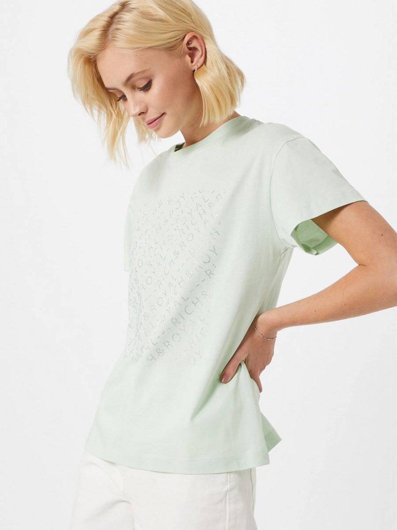 Эту футболку можно носить как с рваными джинсами, так и с классическим костюмом. Прямой покрой и хлопковый материал обеспечивают комфорт и создают непринужденный образ. Гламурные акценты - декор стразами на переде футболки.