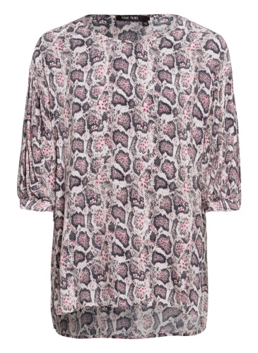 Блуза в трендовом змеином принте. Прямой крой, круглый вырез горловины, втачные рукава 1/2. Приятный к телу вискозный материал обеспечивает максимальный комфорт.