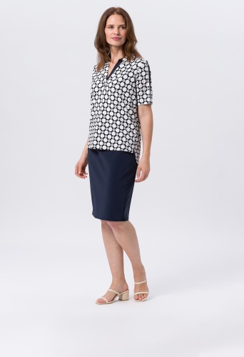 Повседневная спортивная рубашка-поло в элегантном стиле. Слегка удлиненная спинка с небольшими боковыми разрезами и летним V-образным вырезом.