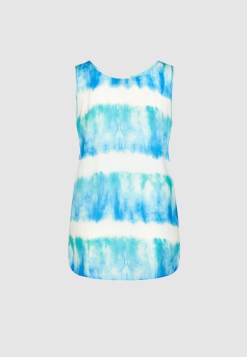 Блуза с круглым вырезом и принтом батик из небрежно драпированного японского атласа придает изысканный и свежий вид. Вырезы отделаны окантовкой. Изогнутый подол дополнен боковыми разрезами для еще большего комфорта и струящегося стиля.