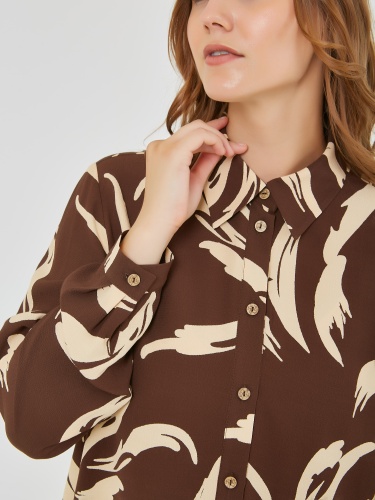 Лёгкая блузка из вискозы с планкой и застежкой на пуговицы по переду. Длинные рукава с узкими манжетами на пуговицах. Осень-Зима'25/26. Капсула "Хозяйка медной горы"