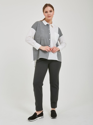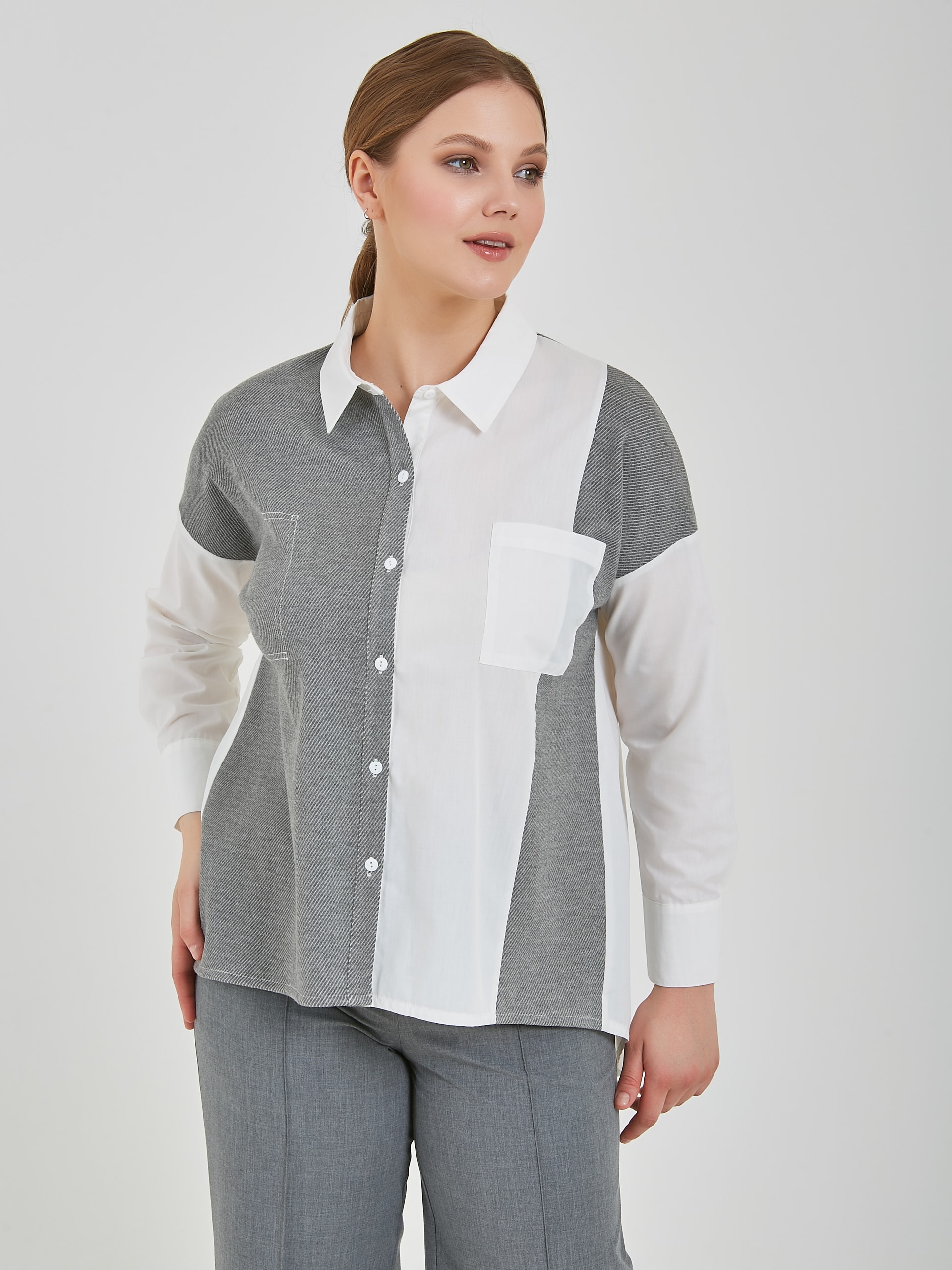 Оригинальная рубашка из комбинированной ткани, прямого силуэта с накладним карманом на груди. Осень-Зима'25/26. Капсула "Вишневый сад"