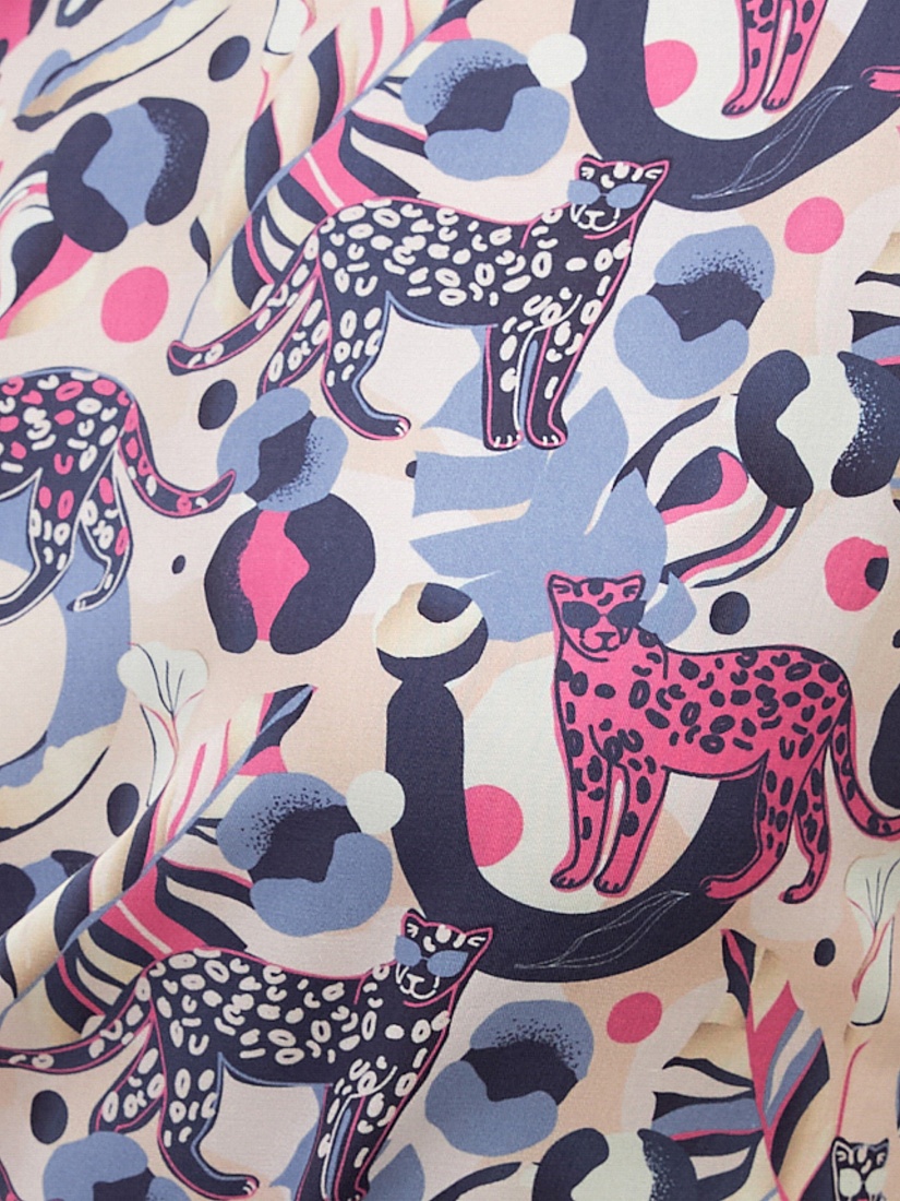 Свободная блуза из натуральной ткани в якром принте, прямого силуэта с классическим отложным воротником и втачным рукавом полной длины на манжете. Застёжка спереди на пуговицы. Яркая блуза добавит в ваш гардероб яркий и свежий акцент.