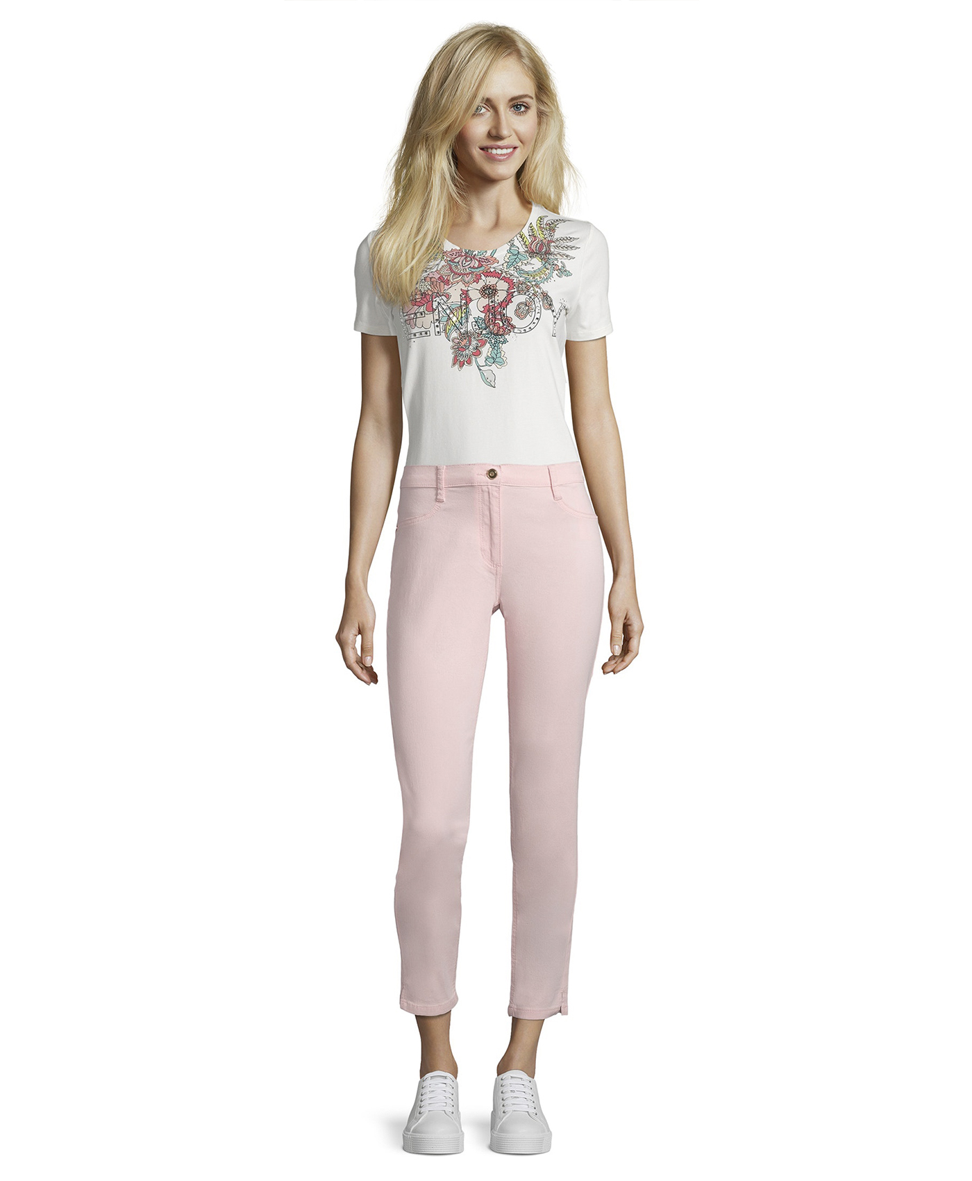 Однотонные брюки - универсальная модель! Брюки прямого кроя, средней посадки. Укороченная длина брюк позволяет подчеркнуть модную обувь. Материал из хлопковой смеси приятен к телу и обеспечивает комфорт в ношении. Эти брюки позволяют создать множество стильных образов с различными вариантами верха и обуви.
