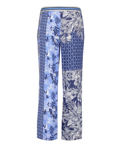 Широкие брюки в моде! Брюки средней посадки с эластиным поясом. Укороченная длина позволяет подчеркнуть модную обувь. Принт с сочетанием цветочных и графических мотивов обращает на себя внимание. Вискозный материал приятен к телу и обеспечивает максимальный комфорт. В сочетании с однотонной футболкой или блузкой эти брюки создают яркий современный образ.