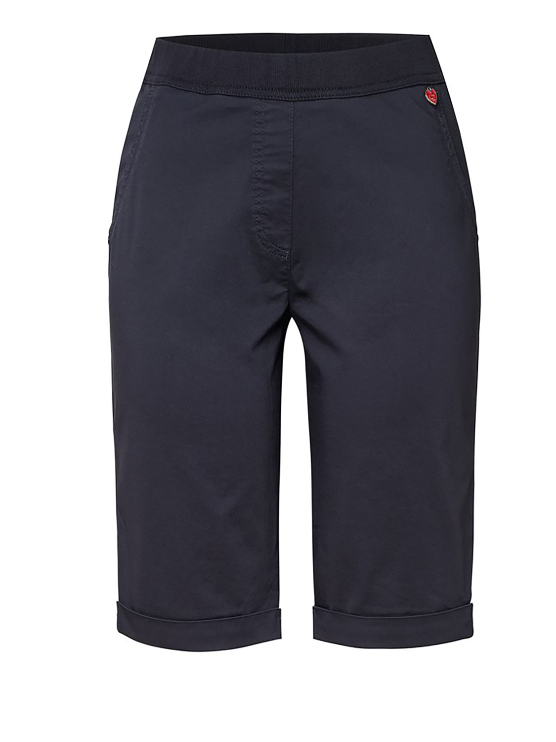 Однотонные шорты в базовом темно-синем оттенке – идеальный вариант низа для повседневного образа в теплое время года. Длина до колена позволяет надеть шорты в офис или на встречу, если сочетать с верхом в деловом стиле. Комфортная высокая посадка. Застежка на скрытую молнию и пуговицу. Боковые изогнутые карманы спереди, накладные карманы сзади.