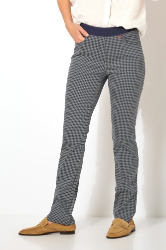 Брюки в мелкую клетку прямого кроя. Полная длина, комфортная высокая посадка. Эластичный пояс гарантирует удобство повседневного ношения. Милый акцент – сердечко-логотип у переднего кармана.