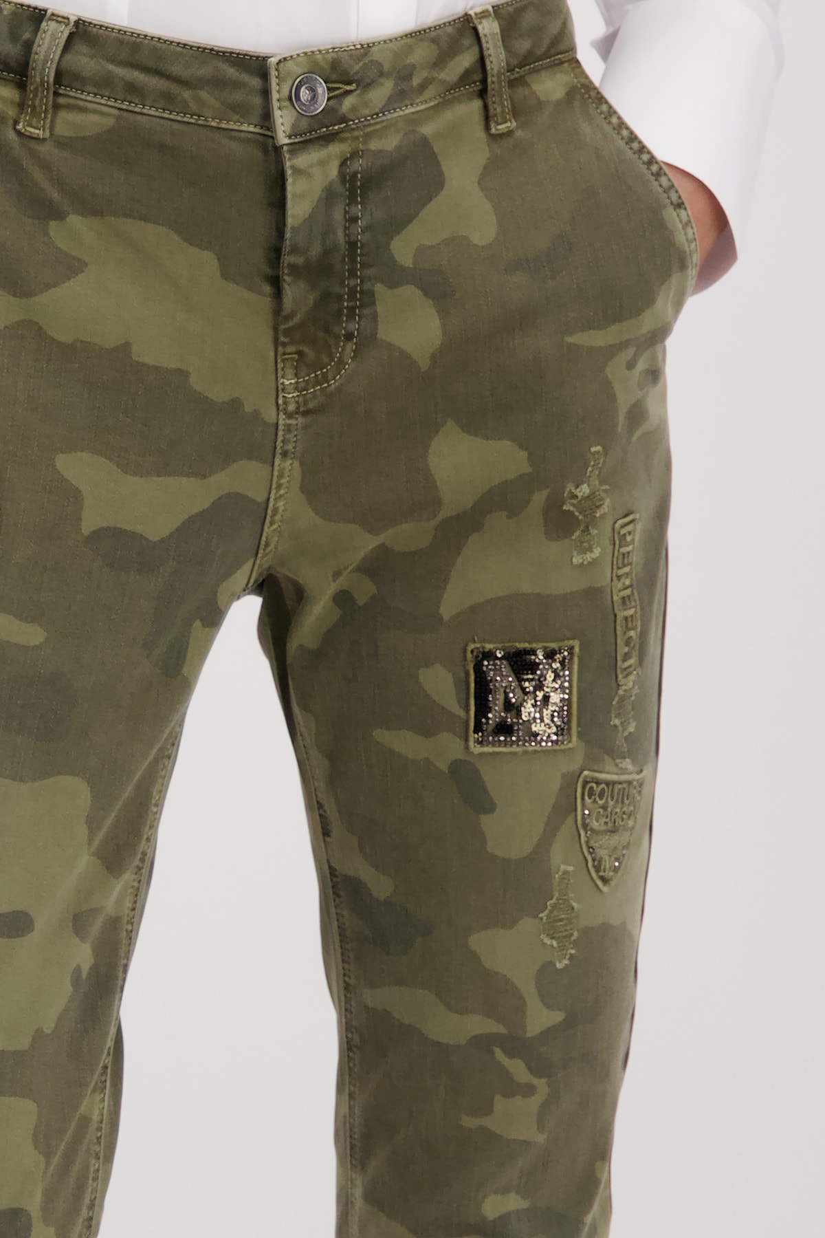 На сайте указаны российские размеры. Эти повседневные брюки-дудочки от monari — настоящее чудо сочетания модных стилей. Независимо от того, как вы хотите это комбинировать, вы всегда на высоте! Узкий крой с нормальной посадкой умело подчеркивает вашу женственность, а сплошной принт с камуфляжным рисунком и сверкающими стразами на заплатках спереди также создает прохладный гламурный стиль. Инвестируйте в неизменный фаворит и комбинируйте по своему усмотрению. Рост модели 176 см Длина по внутреннему шву 72 см во всех размерах.