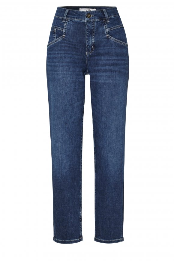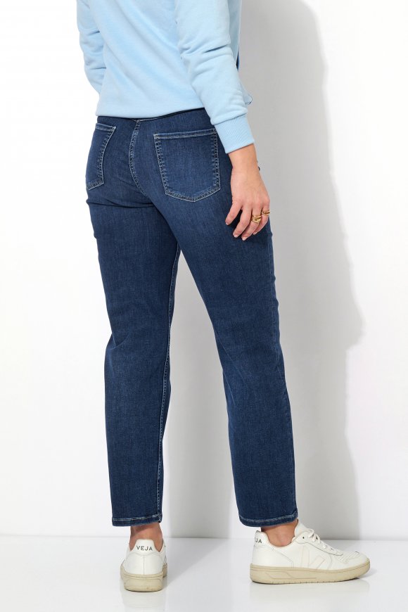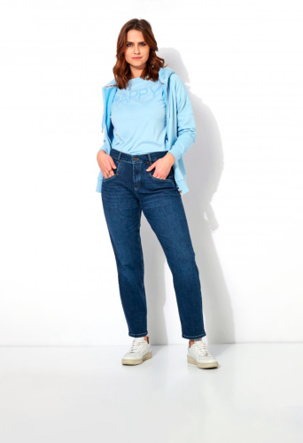 На сайте указаны российские размеры. Прямые джинсы средней посадки с изысканным решением карманов, средней высоты по поясу и длиной до щиколотки. Рост модели 178 см.
