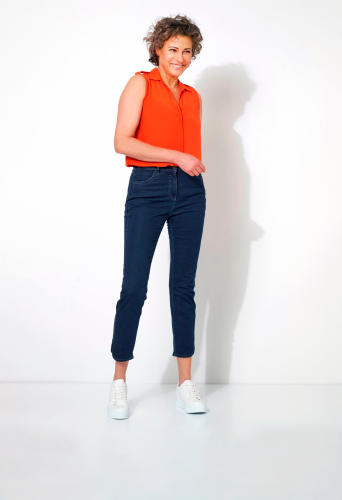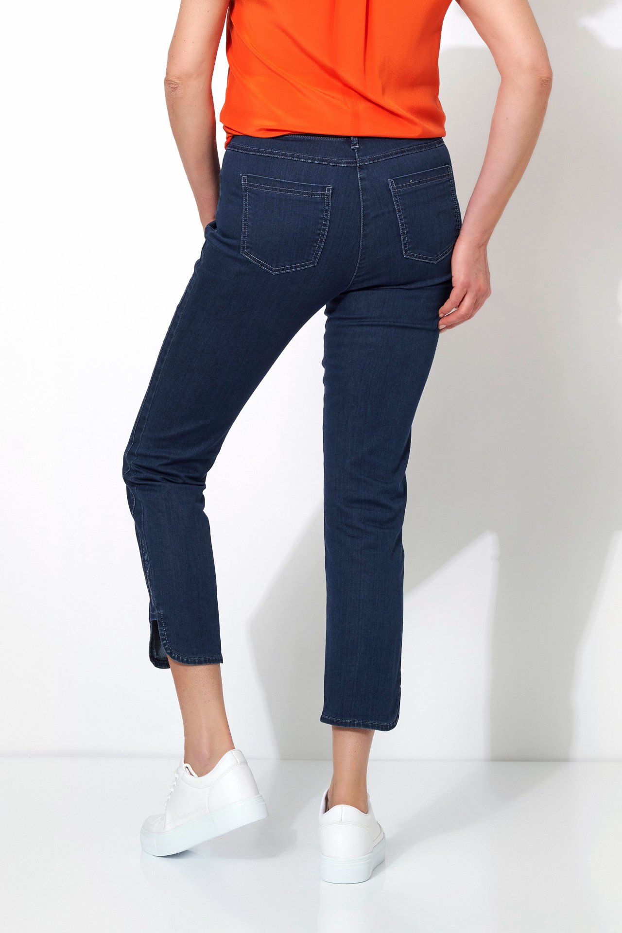 На сайте указаны российские размеры. Облегающие укороченные джинсы со стразами на голени, изысканным подолом, двойными боковыми швами и из легкой джинсовой ткани. Высокая посадка. Рост модели 180 см.