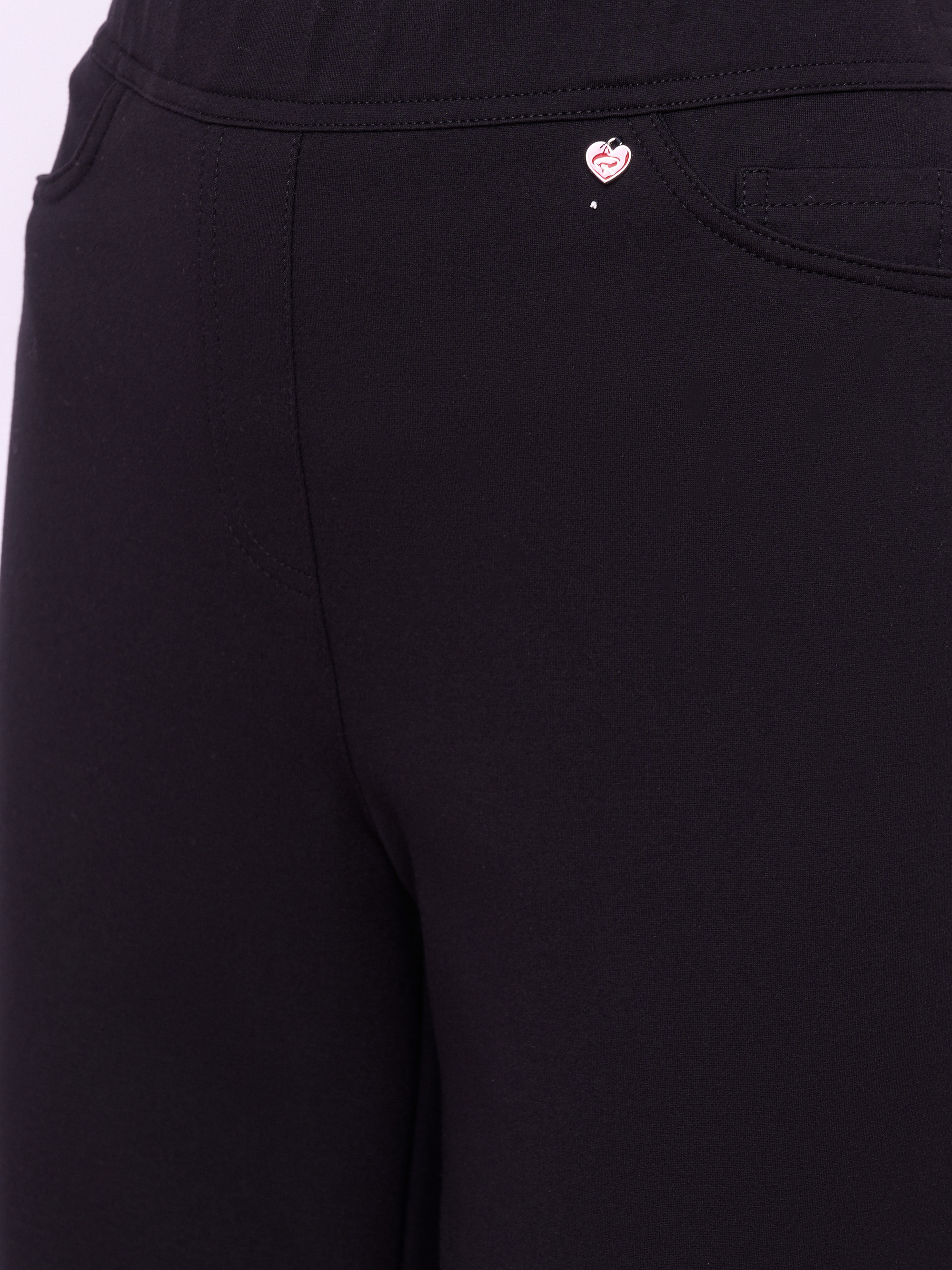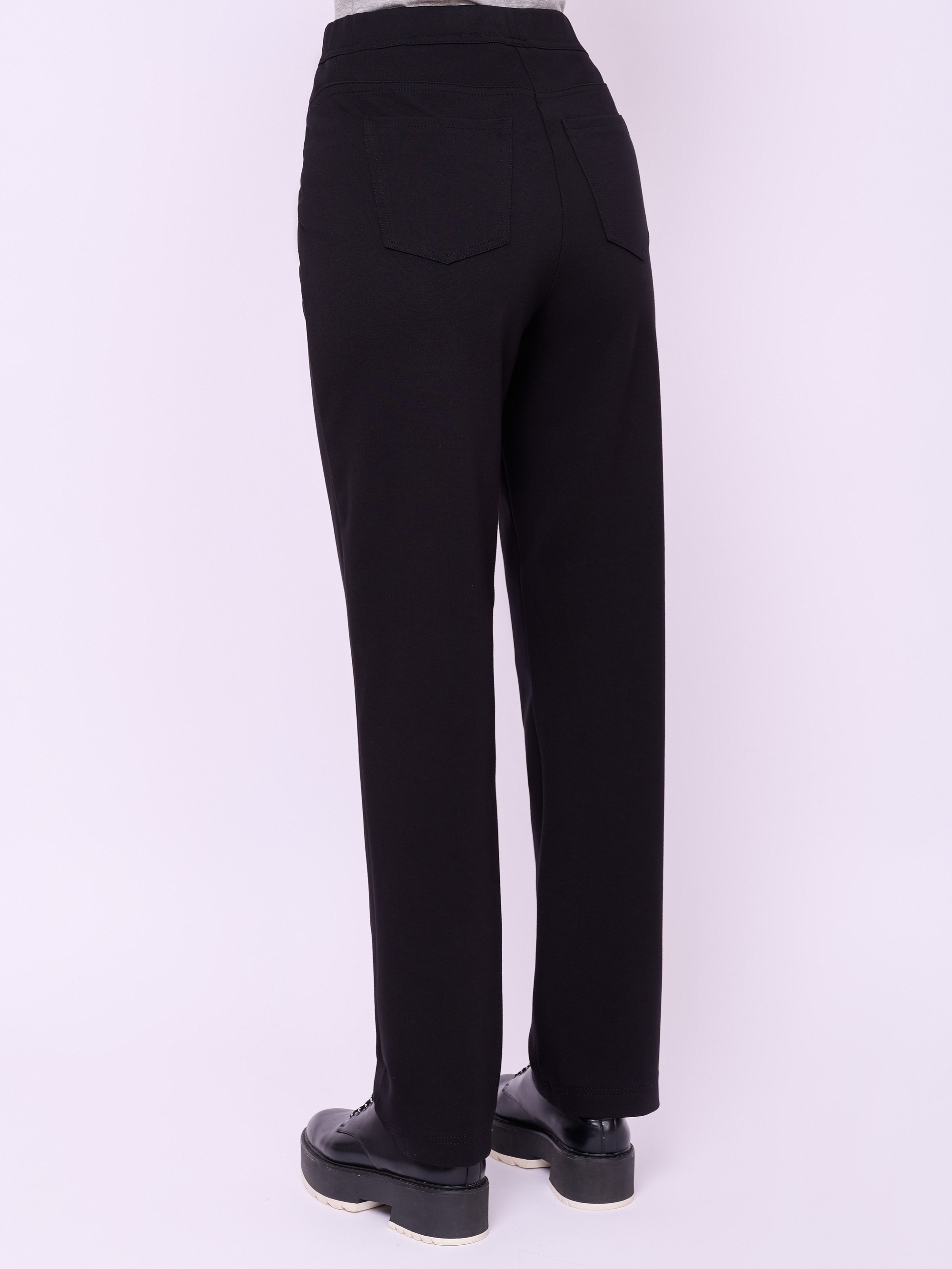 Детали: трикотажные брюки, плотный трикотаж, без застежки, пояс на резинке, без рисунка, карманы накладные, крой брючин зауженный, посадка средняя.