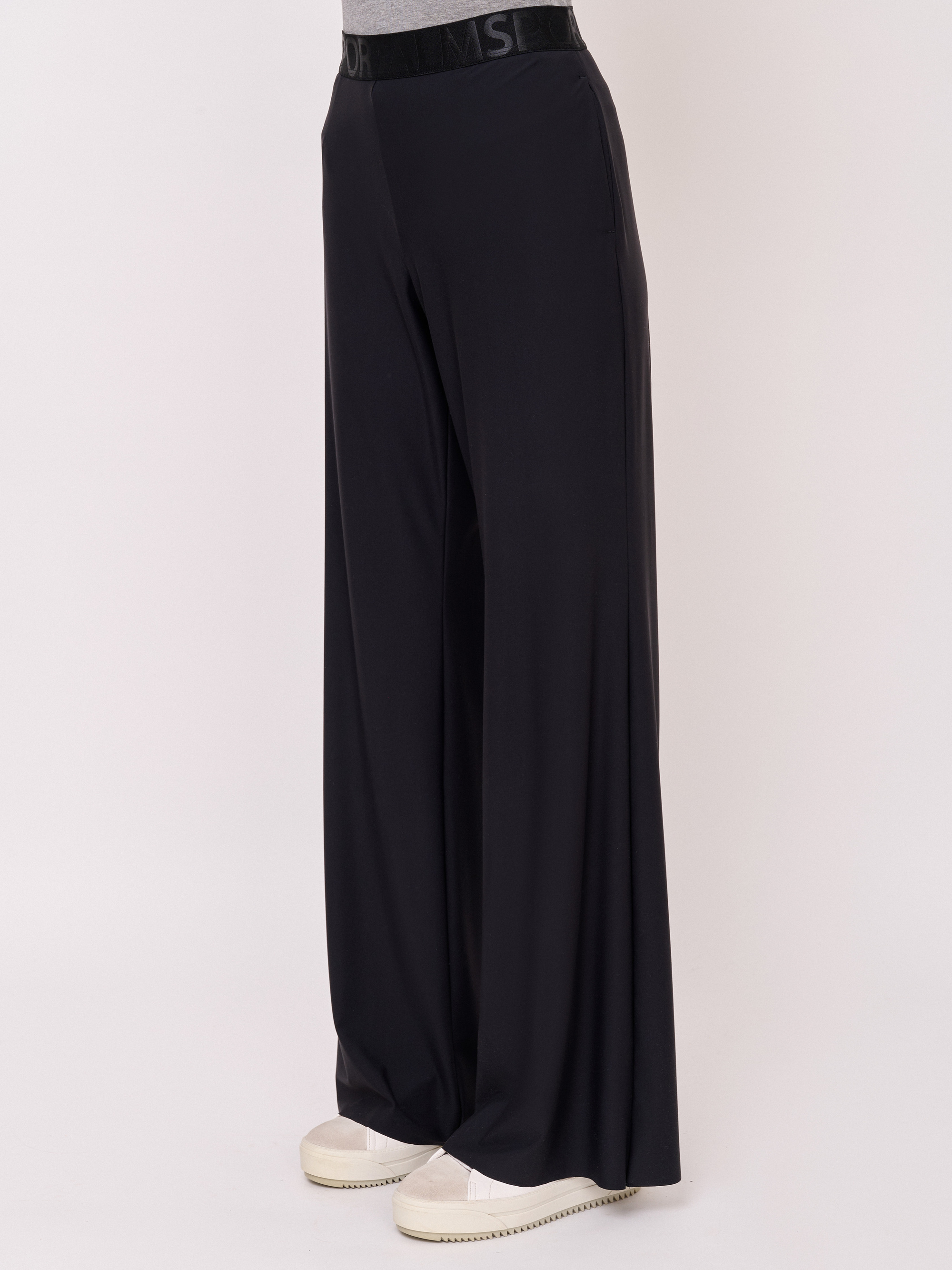 Детали: без застежки, пояс на резинке, без рисунка, карманы в шве, крой брючин широкий, посадка средняя. Длина брючин: 91 см.