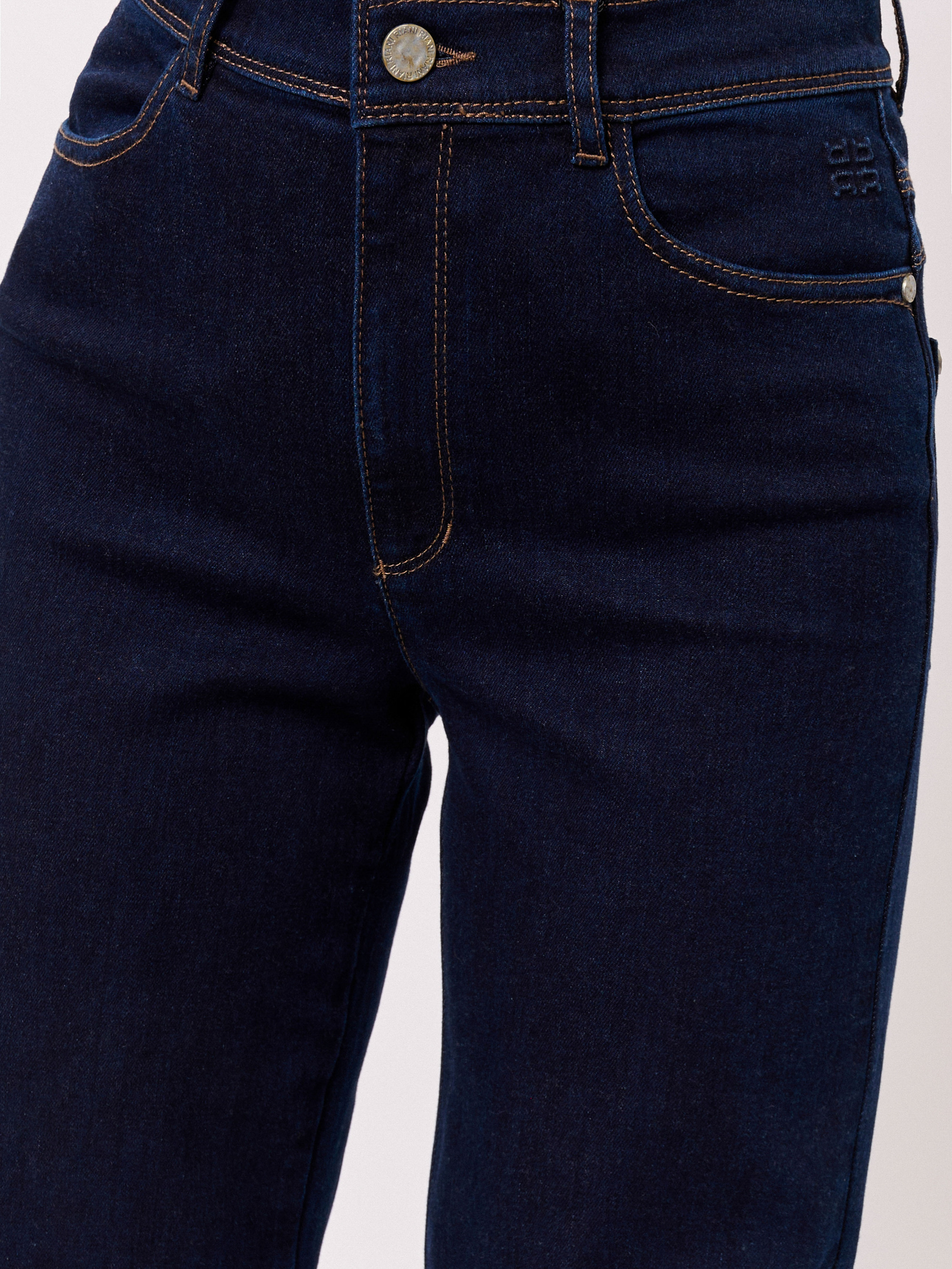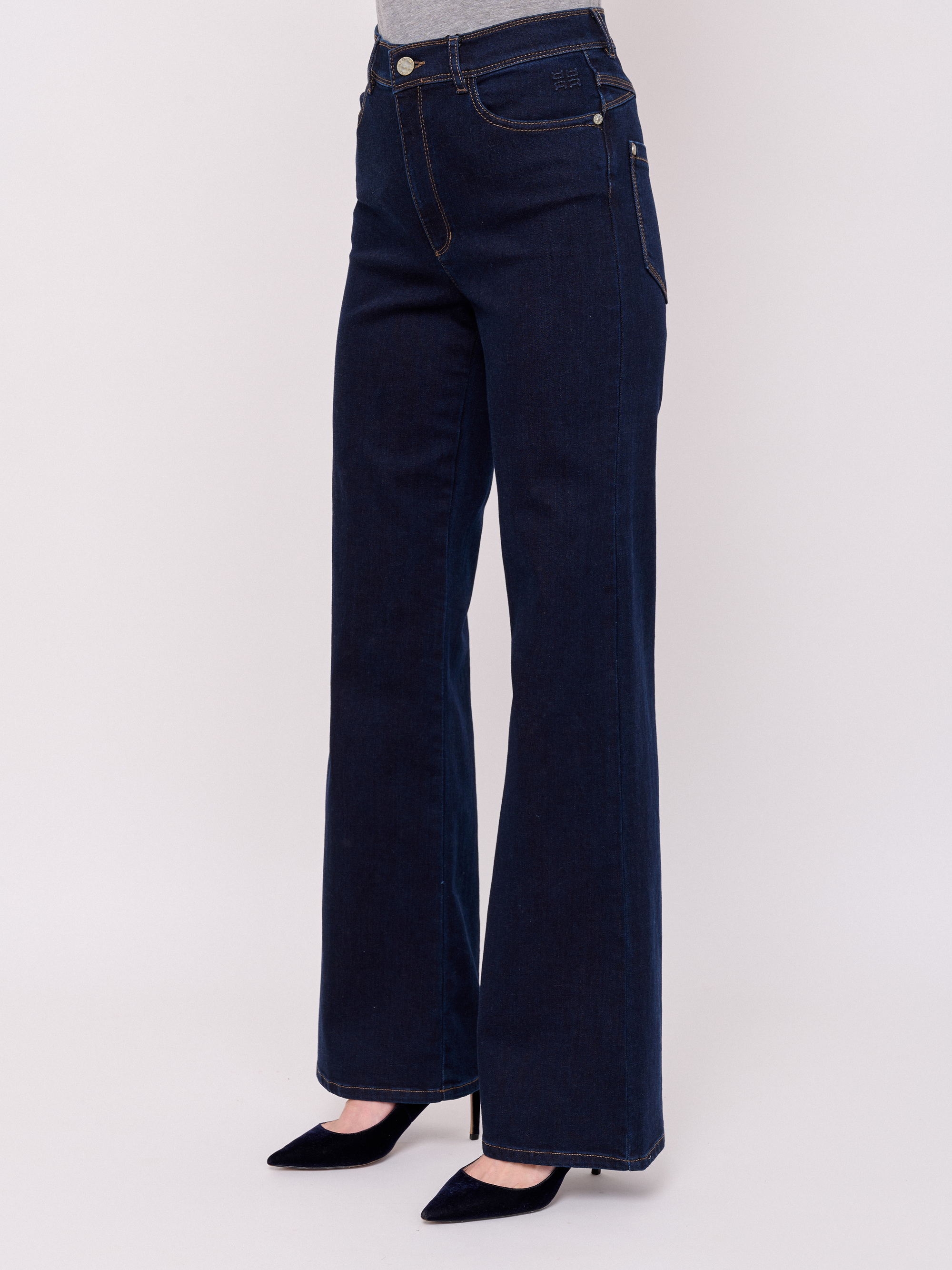 Детали: плотный деним, застежка молния, без рисунка, карманы с отрезным бочком, кройбрючин широкий клеш wide leg, посадка средняя.