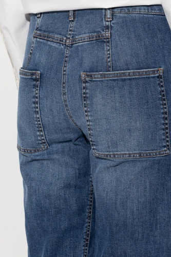 Укороченные джинсы свободного кроя из настоящего эластичного денима с оттенком синего цвета и винтажными эффектами. Слегка изогнутая форма штанин, разделительные швы на высоте колена и открытые края также характеризуют дизайн. Брюки очень удобны в носке благодаря использованию специальной эластомультиэфирной пряжи.