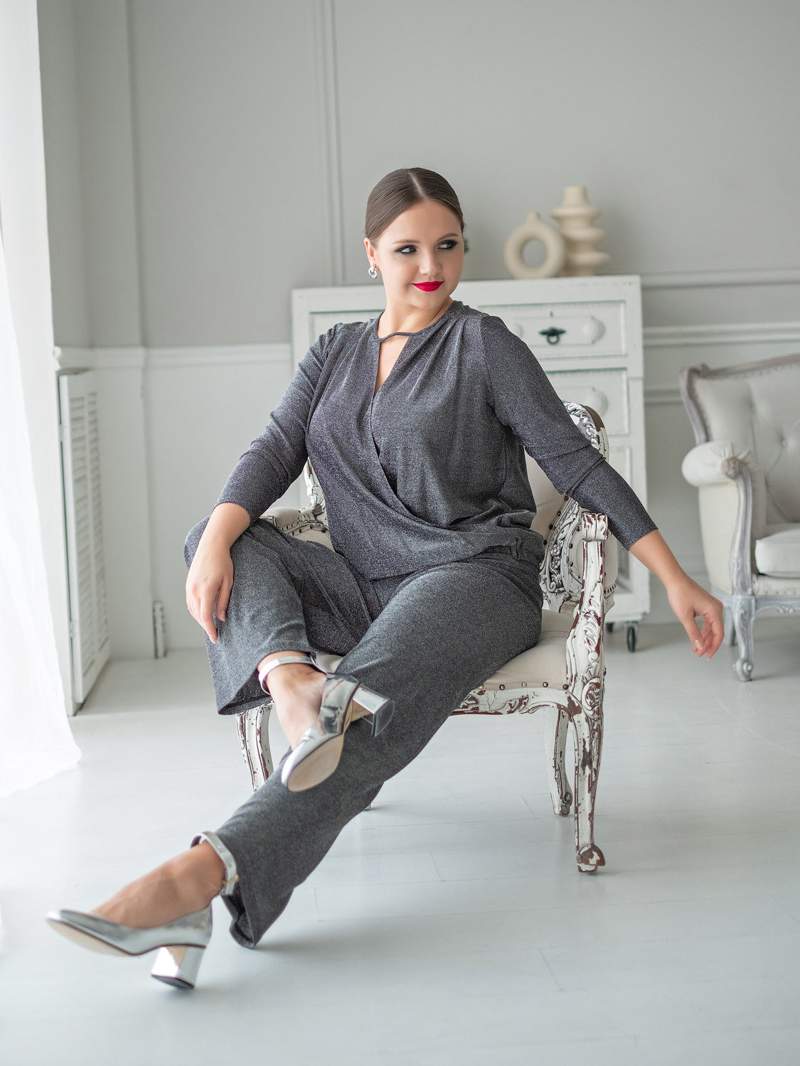 Стильные брюки свободного кроя с нитью люрекса в составе можно сочетать с джемпером из того же материала для создания сияющего образа на любом торжественном мероприятии!