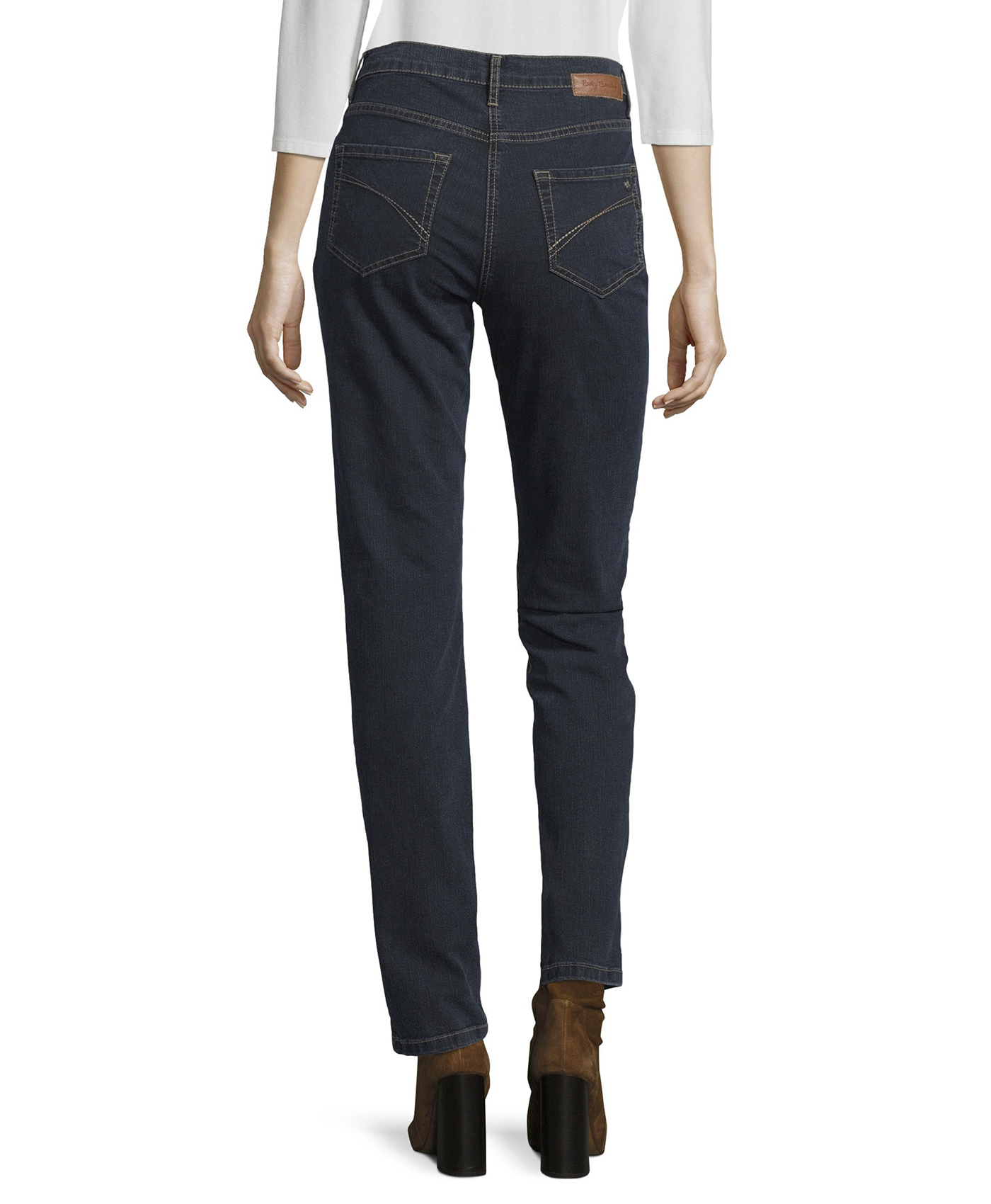 Джинсы прямого покроя - абсолютная классика современной моды! Материал из хопковой смеси практичен и приятен к телу. Однотонная модель без характерных джинсовых потертостей прекрасно сочетается как с футболкой, так и с блузой в романтическом стиле.