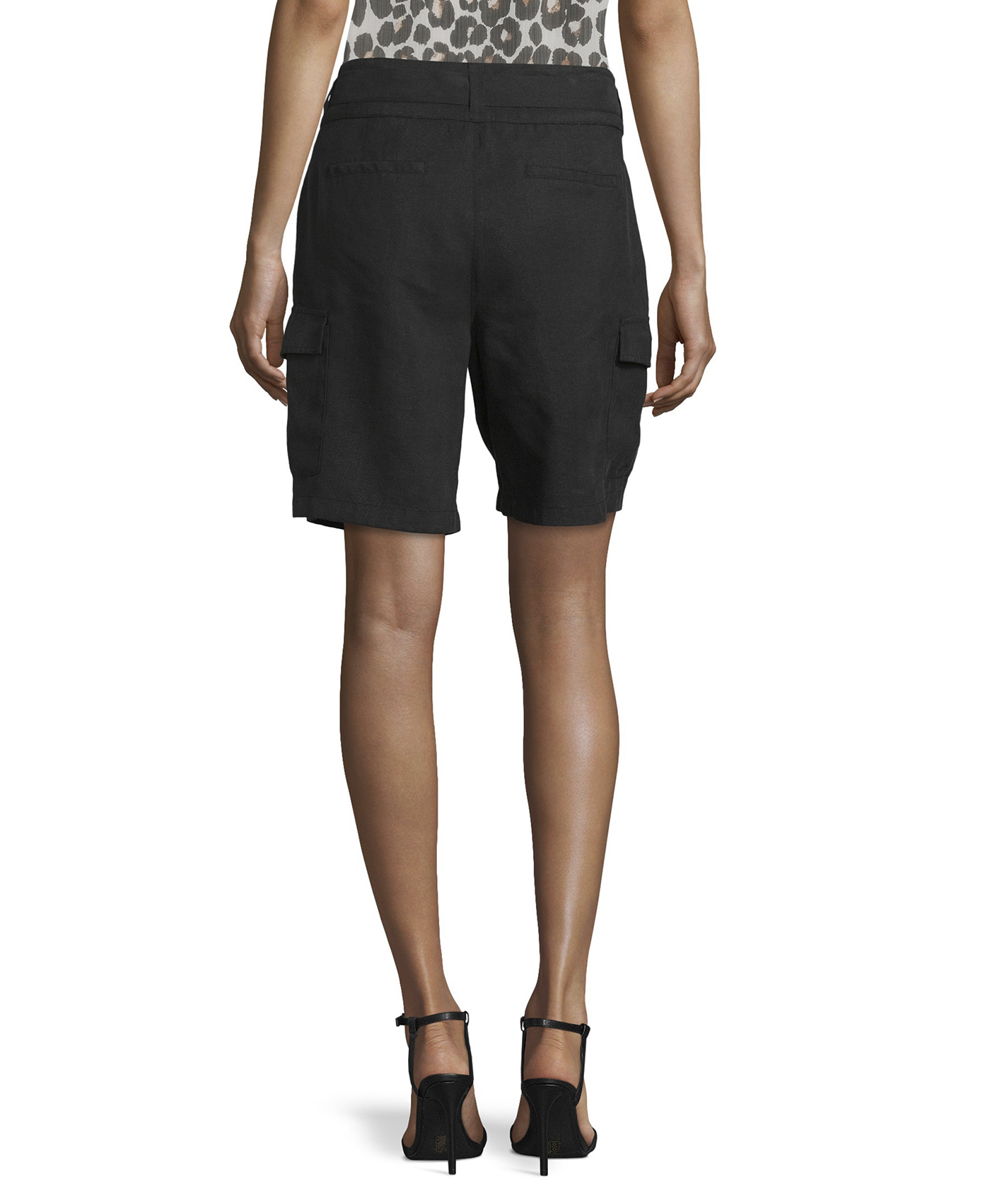 Шорты-бермуды - абсолютно трендовая вещь. Накладные карманы по бокам. Акцент модели - пояс-бант. Материал из смеси тенсела и полиэстера приятен к телу и обеспечивает комфорт в ношении. Идеальный вариант для прогулок и путешествий. Независимо от выбора верха и обуви, модный образ с этими шортами вам гарантирован!