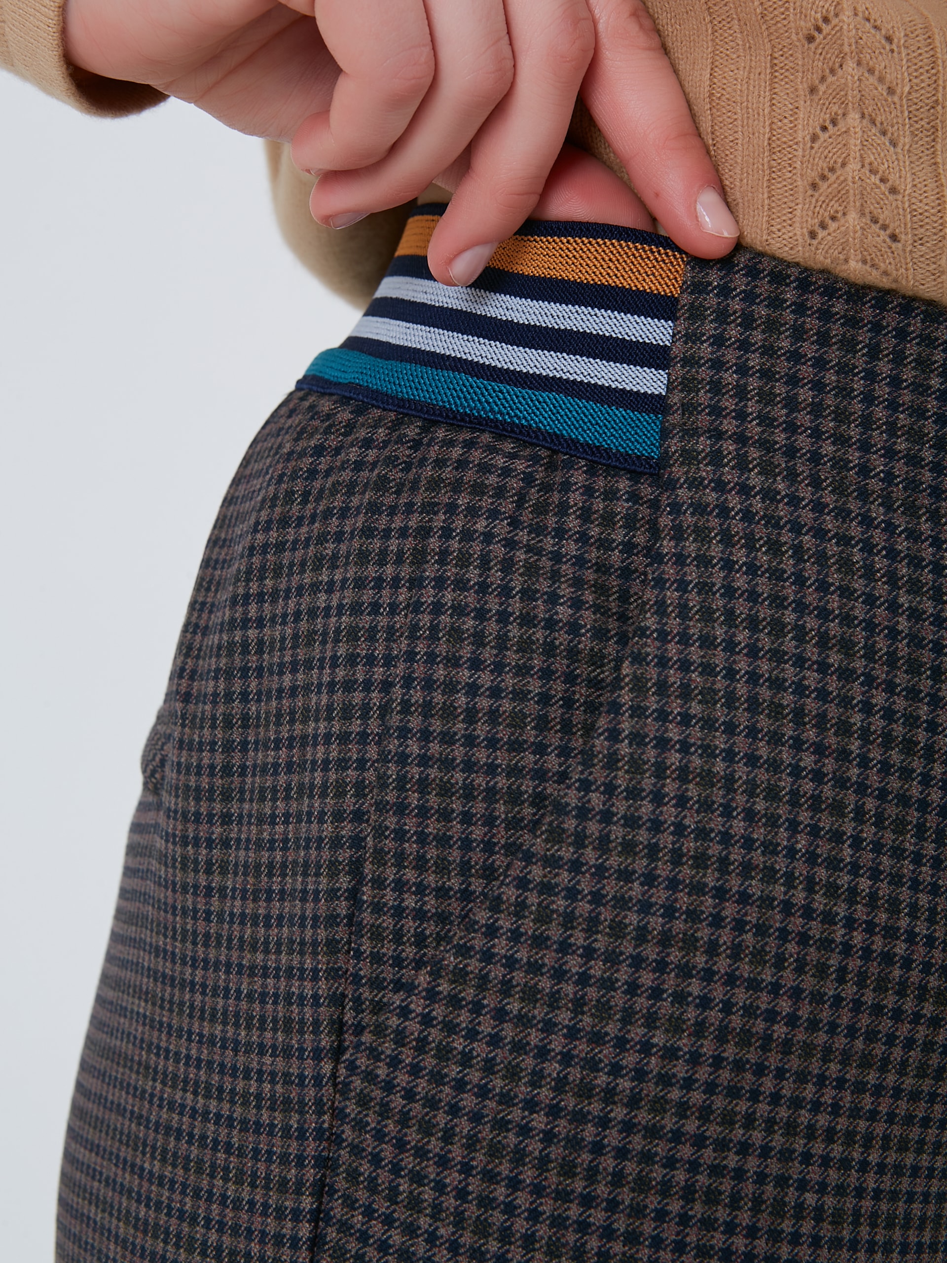 Классические брюки полной длины в деликатную клетку. Яркий акцент - резинка по задней части пояса. Коллекция Осень-Зима 2024-2025. Капсула "Крадущийся тигр, затаившийся дракон".