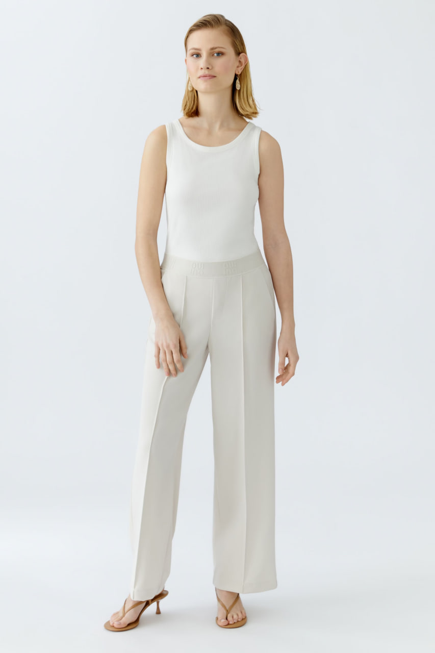 Брюки привлекают внимание продуманным дизайном: отсутствие застёжек обеспечивает лёгкость надевания, а прошитая вытачка сохраняет постоянную складку спереди, что придаёт изделию аккуратный и структурированный вид.