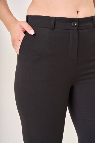 Женские классические брюки прямого кроя. Комфортная посадка на талии и элегантный крой идеально подходят для офисного и повседневного гардероба. Сзади расположены два аккуратных накладных кармана, подчёркивающие классическую стилистику изделия. Плотная ткань сохраняет форму и выглядит презентабельно на любой фигуре. Осень-Зима'25/26