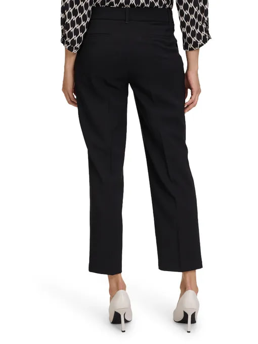 Эти черные брюки с высокой посадкой сочетают в себе современный стиль и максимальный комфорт. Прямой крой с легким расклешением книзу создает эффект стройности и визуально удлиняет ноги. Универсальная расцветка позволяет легко интегрировать их в любой гардероб, создавая как повседневные, так и более формальные образы.