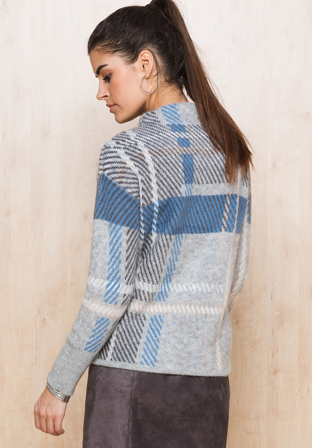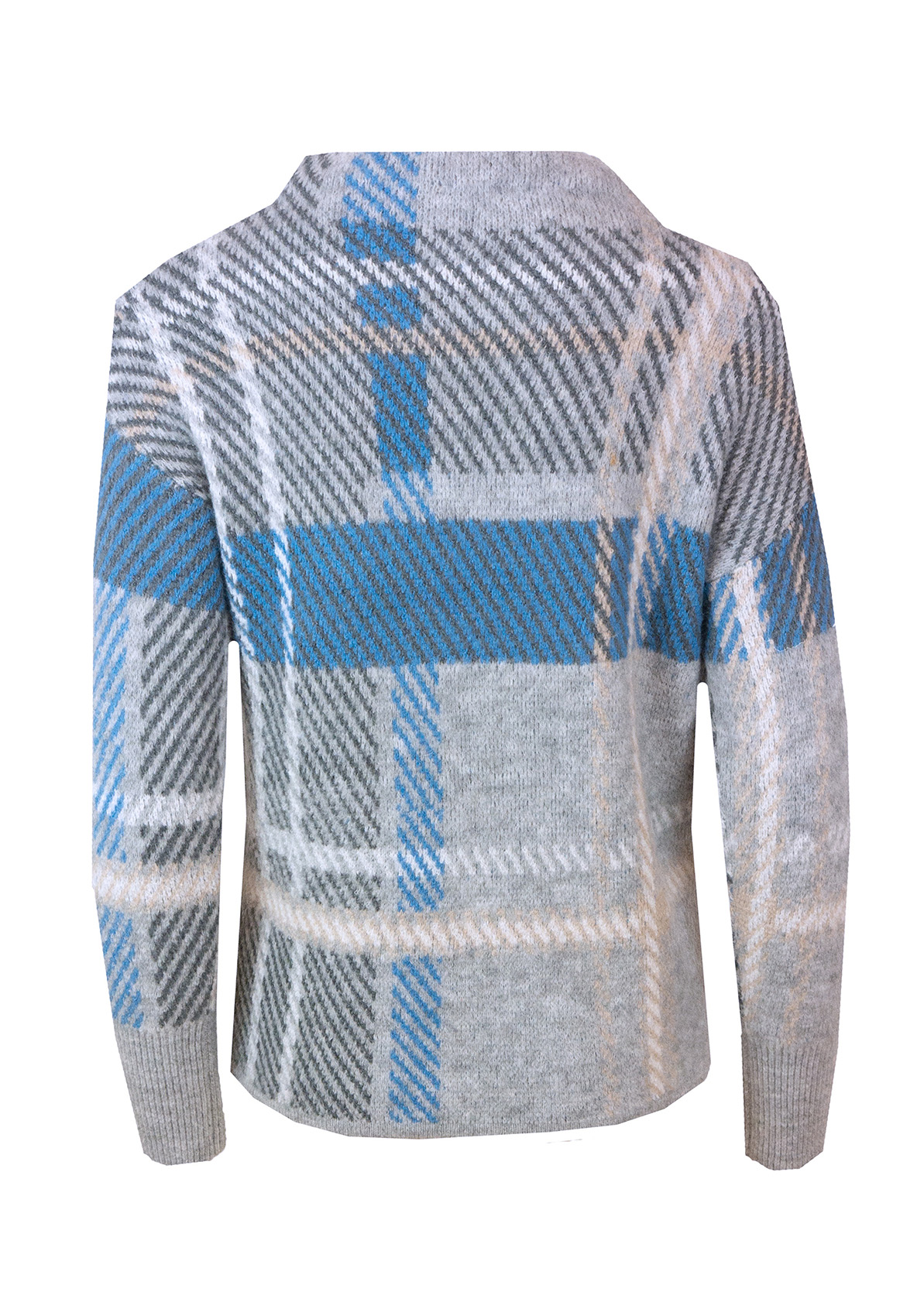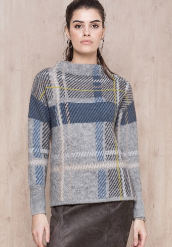 Джемпер свободного покроя великолепно дополнит ваш осенний образ. Вырез горловины "воронка", рукава полной длины со спущенным плечом. Новая интерпретация узора в клетку притягивает восхищенные взгляды. Смесовый материал приятен к телу и обеспечивает сохранение тепла.