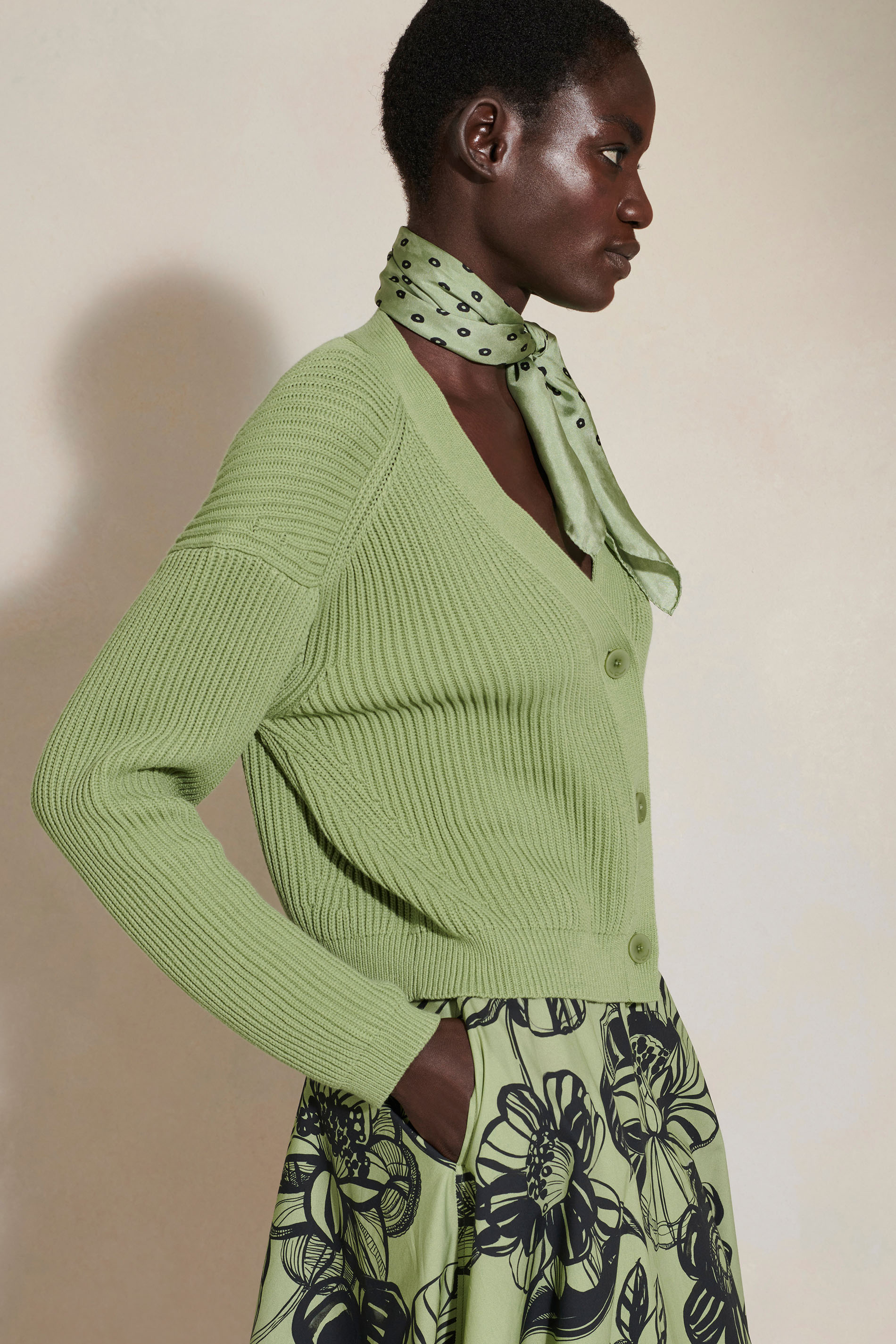 Hемецкий бренд. На сайте указаны Российские размеры. Кардиган из хлопка. Этот укороченный кардиган из толстого материала согревает владельца в прохладные дни.