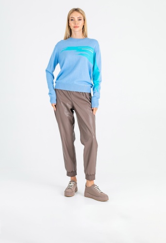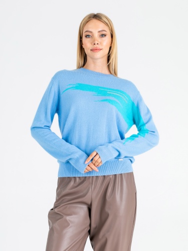 На сайте указаны российские размеры. Ткань: смесовая ткань средней плотности. В составе: 27% вискоза, 27% нейлон, 23% ангора, 23% шерсть. Крой: джемпер слегка приталенного силуэта с круглым вырезом и длинным рукавом. Комфортный материал, где за мягкость отвечает вискоза, а за тепло – ангора и шерсть. Резинки на манжетах и конце изделия обеспечивают надежное прилегание, Резинки на манжетах и конце изделия обеспечивают надежное прилегание, не открывают зону живота, что особенно актуально в холодное время года. Представлен в двух стильных оттенках – голубом и розовом. Отделка: художественная абстракция может восприниматься по-разному: для одних это мазок кисти художника, для других – хвост кометы. Небольшая дорожка страз добавляет звёздного сияния, делая вас – главной звездой этого дня. Джемпер украшен фирменным шильдиком. С коллекцией брюк и юбок для создания образа с джемпером можно познакомиться в соответствующих разделах нашего сайта. Рост модели - 177 см