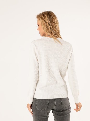 На сайте указаны российские размеры. Ткань: 55% вискоза, 45% хлопок+нейлон Крой: базовый джемпер прямого силуэта средней длины. Модель с удлиненными рукавами и круглым воротом – вечная классика, которую так легко вписать в повседневный гардероб. Джемпер подчеркивает все достоинства, в его составе хлопок и вискоза, которые дарят мягкое тепло и уют. Прямые свободные рукава обеспечивают комфорт и не сковывают движение. Отделка: получайте удовольствие каждый раз, когда проводите рукой по приятному рельефу «елочке», которая добавляет романтичности всему образу. Сочетайте с джинсами, брюками ярких и приглушенных оттенков.