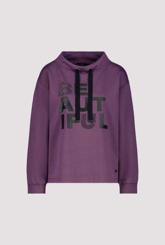 На сайте указаны российские размеры. Толстовка с длинными рукавами, воротником-стойкой и стразами. Удобная посадка обещается благодаря прямому крою с воротником-стойкой, широким манжетам на концах рукавов и слегка завышенным плечам. Надпись из глиттера, сверкающих стразов и блестящего лакового принта стала изюминкой довольно простой во всем остальном рубашки. Модель ростом 176 см