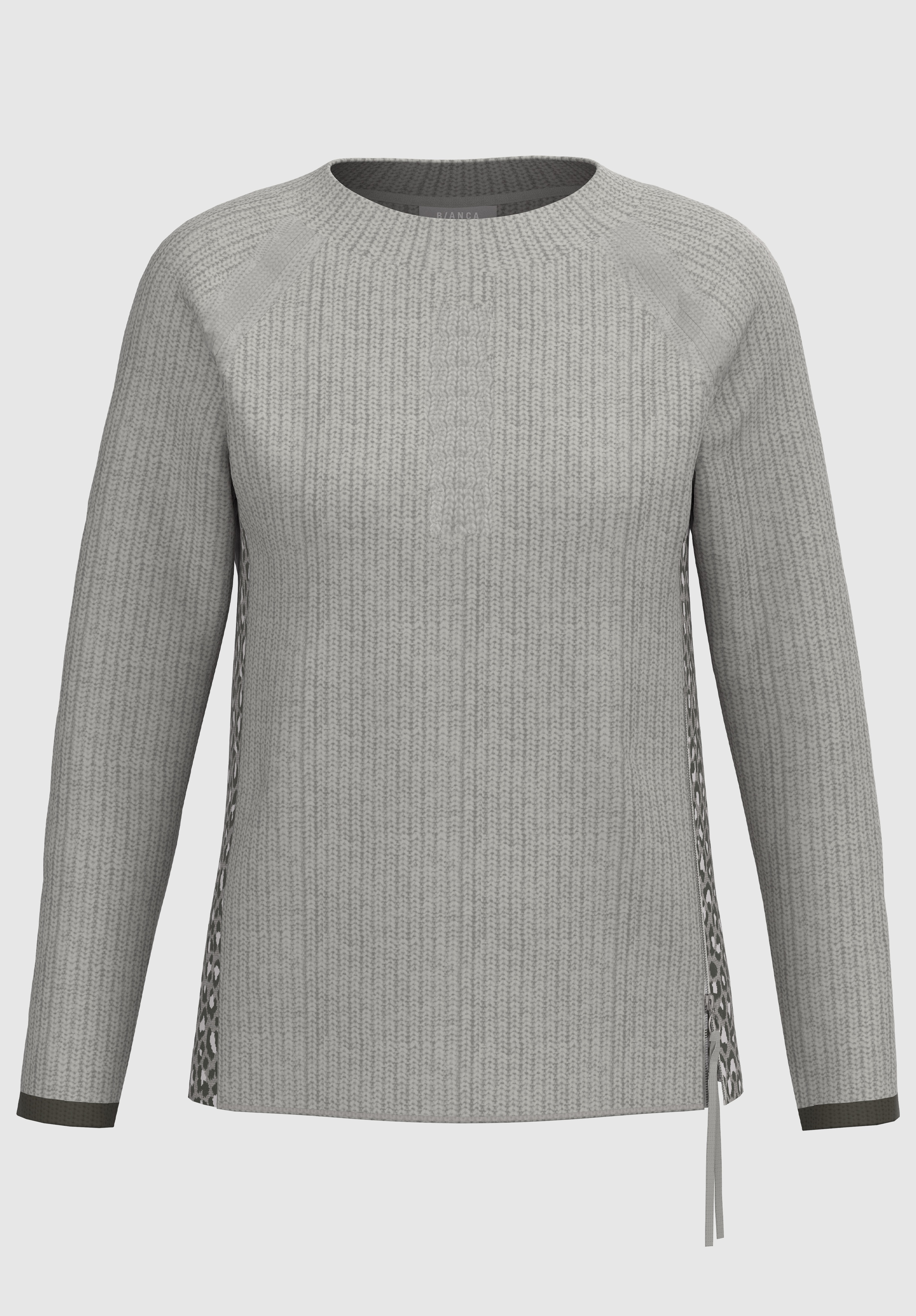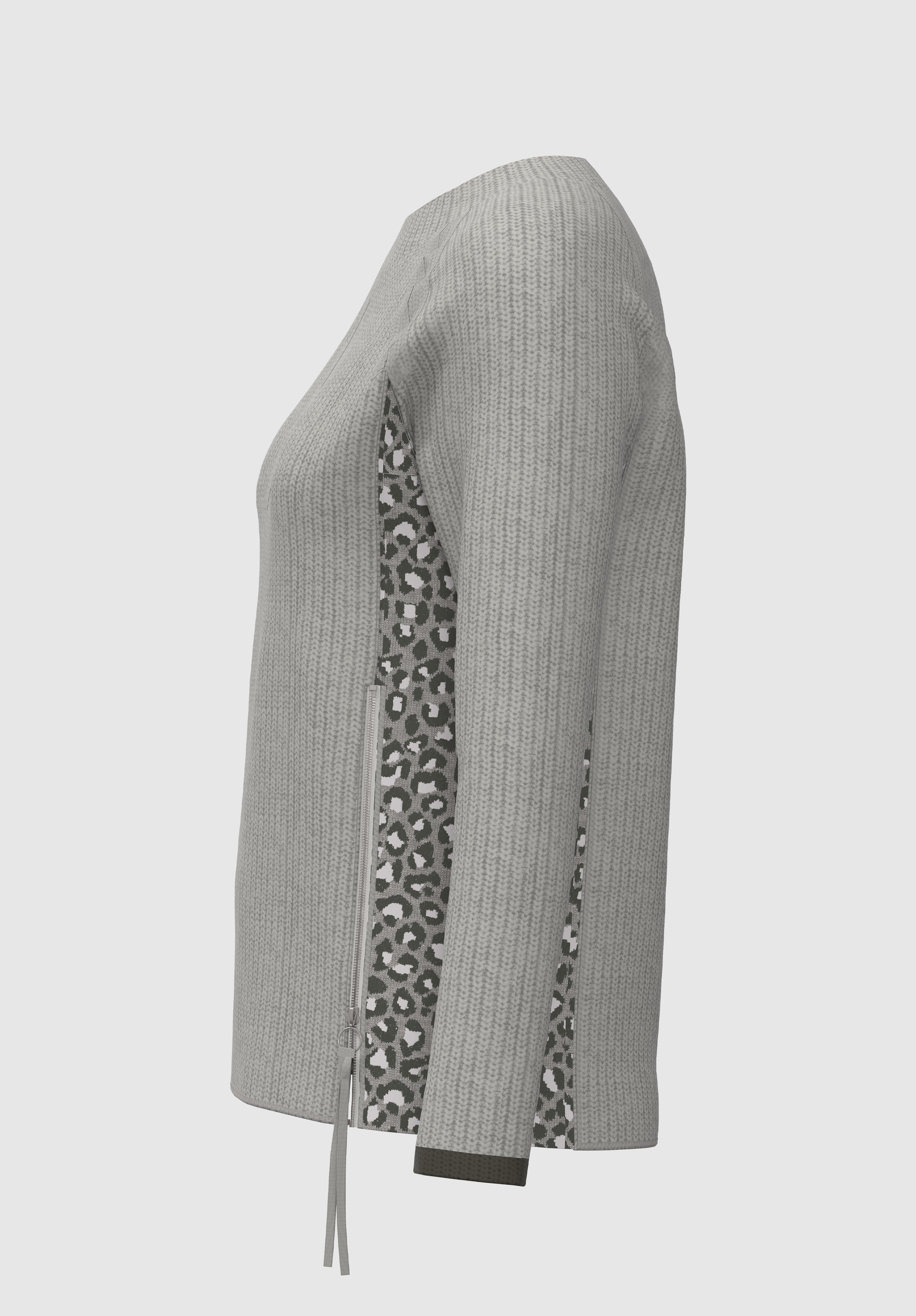 На сайте указаны российские размеры. Свитер крупной вязки с животным принтом сбоку. Высококачественная хлопковая смесь для удобной посадки. Боковая молния и контрастный низ рукавов. Круглый вырез, прямой крой, слегка удлиненная спинка. Длина джемпера в 44 размере - 62 см.