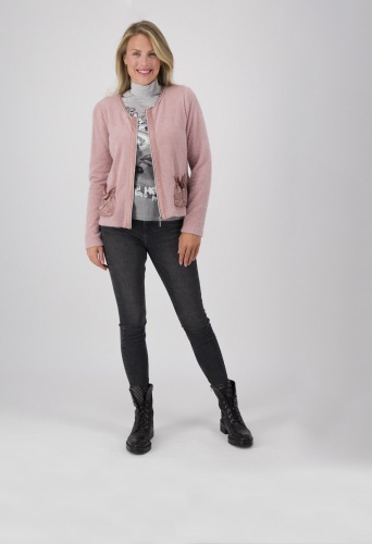 На сайте указаны российские размеры. Высококачественный кардиган с максимальным комфортом. Изюминкой блейзера являются накладные карманы из инновационного контрастного материала, которые можно закрыть блестящей кулиской и разнообразить внешний вид. Высококачественная контрастная ткань также присутствует на практичной молнии и круглом вырезе горловины. Благодаря блестящей окантовке на вырезе этот кардиган выглядит еще более модно! Модель ростом 177 см Измерения для 44 размера: Окружность груди: 99 см Талия: 87 см Бедра: 102 см Длина по спинке: 58 см Длина рукава: 62 см