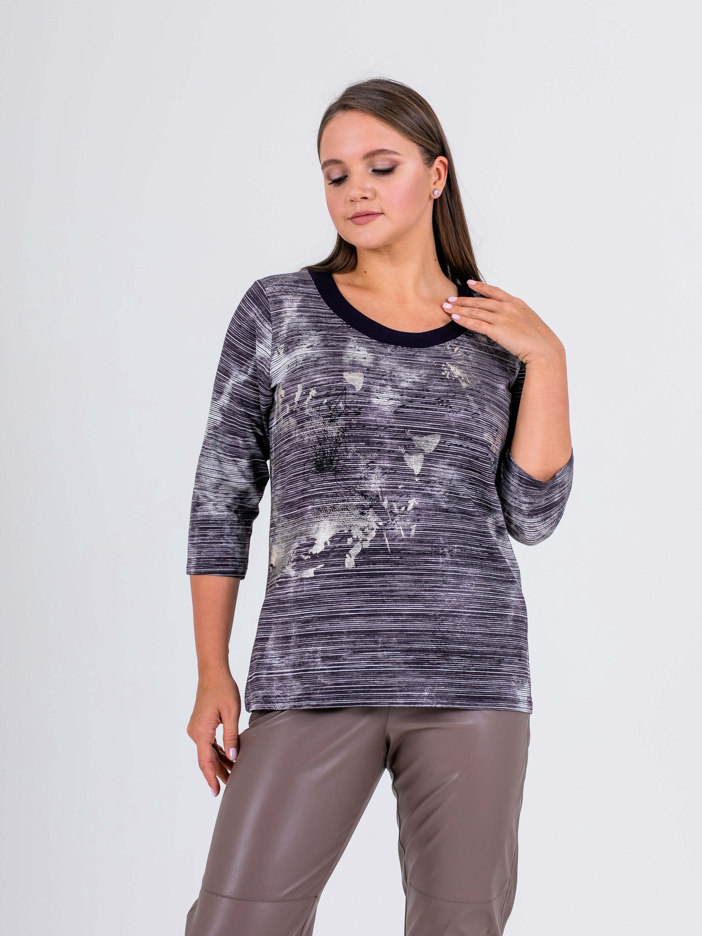 На сайте указаны российские размеры. Ткань:70% вискоза, 25% полиэстер, 5% эластан. Крой: джемпер средней длины прямого силуэта с круглым воротом. Базовая гладкая модель с рукавом ¾ дарит тепло и уют, прекрасно садится на разные типы фигур и обеспечивает комфорт при движении. Отделка: контрастная отделка ворота делает образ запоминающимся. Подберите идеальный низ в разделах юбок и брюк на сайте Stern.