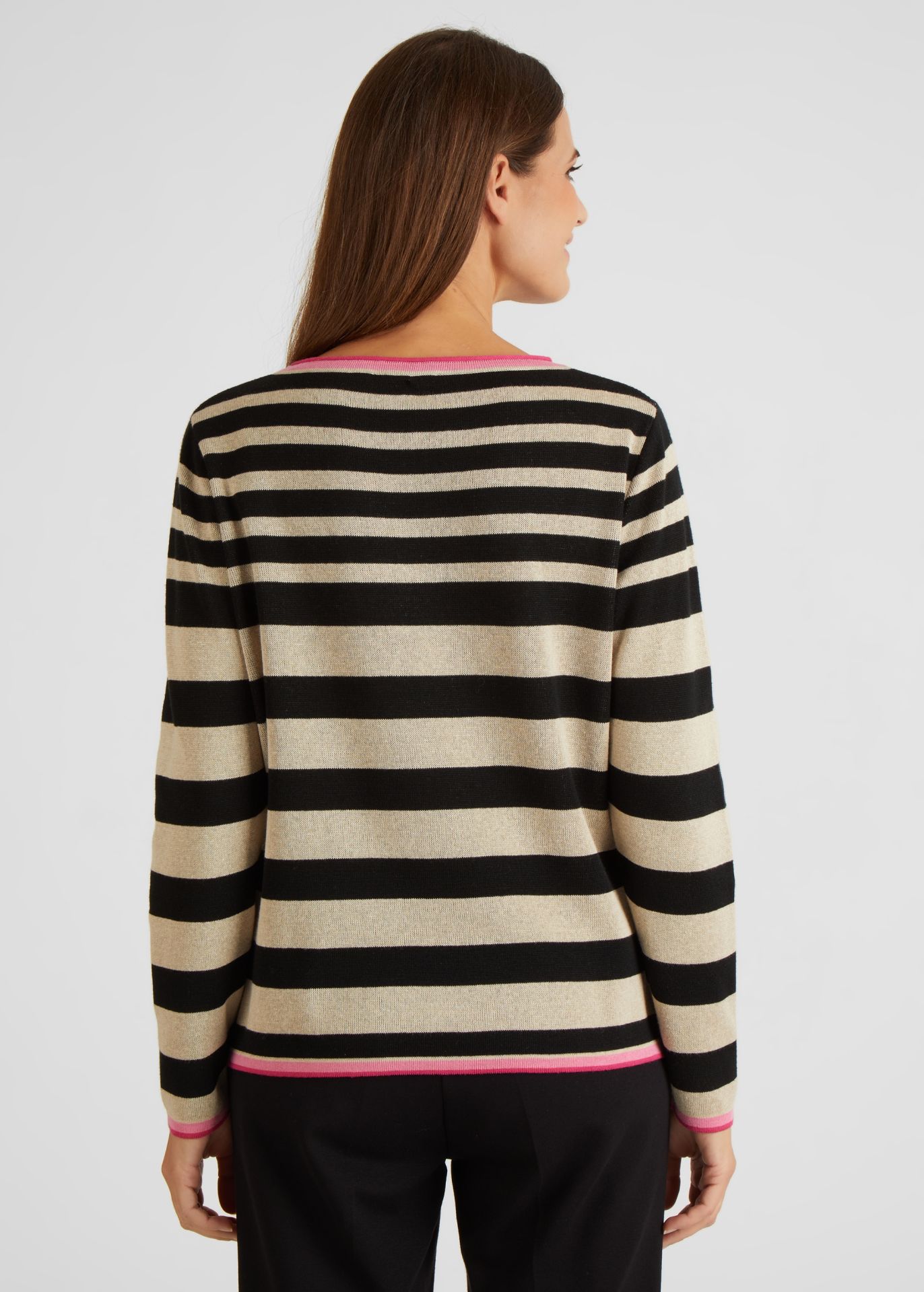 На сайте указаны российские размеры. Вязаный свитер с длинными рукавами впечатляет своим экзотическим видом. Принт спереди состоит из сочетания леопардового принта и надписей. Вязаный джемпер — настоящий талант комбинаций, он хорошо сочетается как с юбкой, так и с брюками. Длина по спинке от плеча для размера 46: 62 см. Рост модели 176 см.