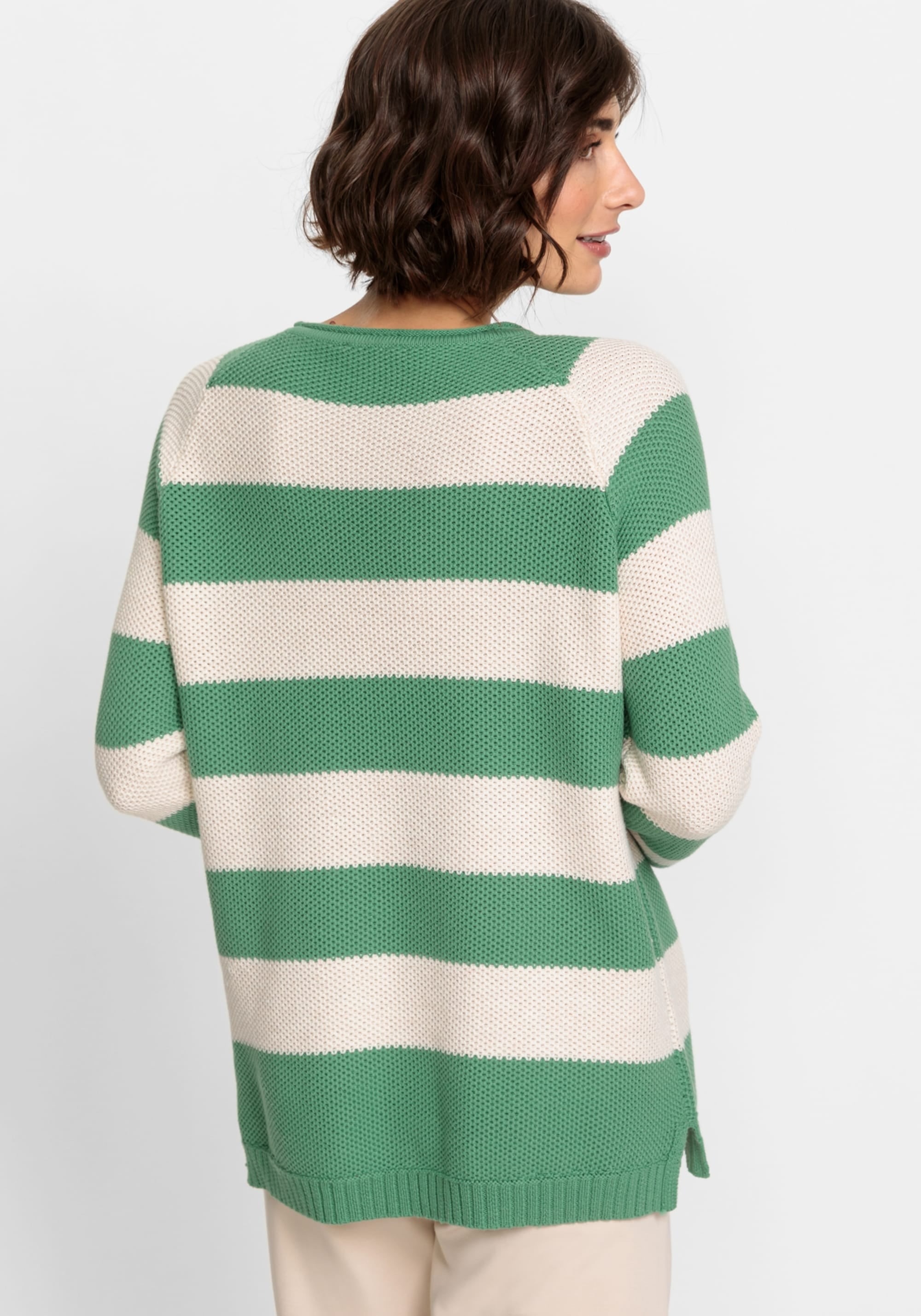Широкие горизонтальные полосы придают этому свитеру классической формы эффектный вид. Новаторская строчка по всей поверхности для придания текстуры и отделка резинкой по краю и рукавам. Смесь хлопка обеспечивает воздухопроницаемость и комфорт для кожи. В нашей современной модели Cora крой свободный и непринужденный.