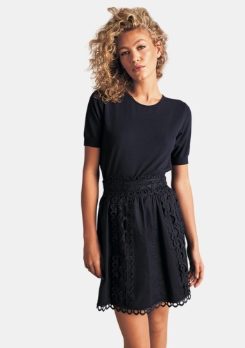 Классический джемпер с полурукавами, круглым вырезом и манжетами на рукавах незаменим в каждом гардеробе и особенно хорошо смотрится в этом оттенке.