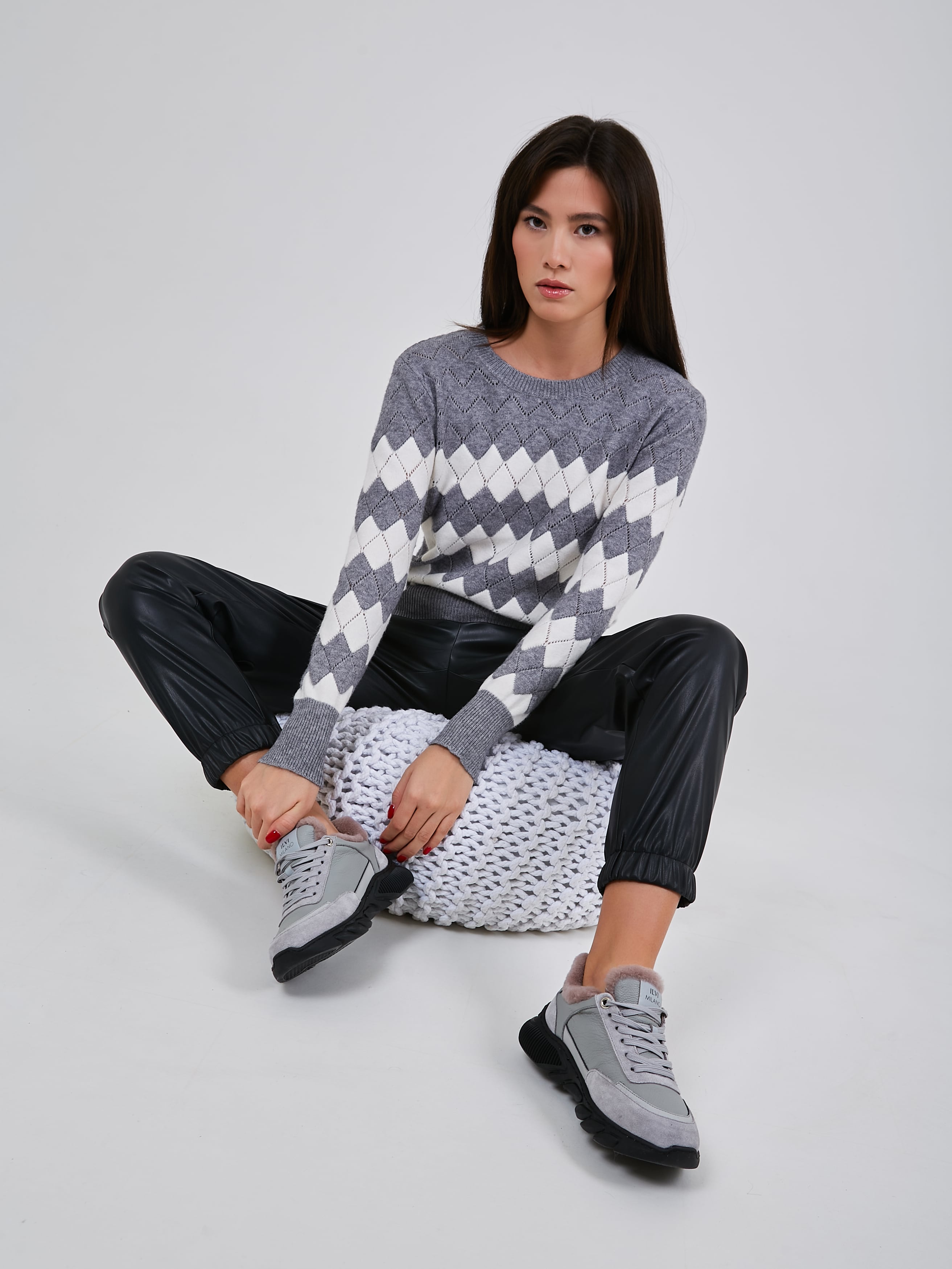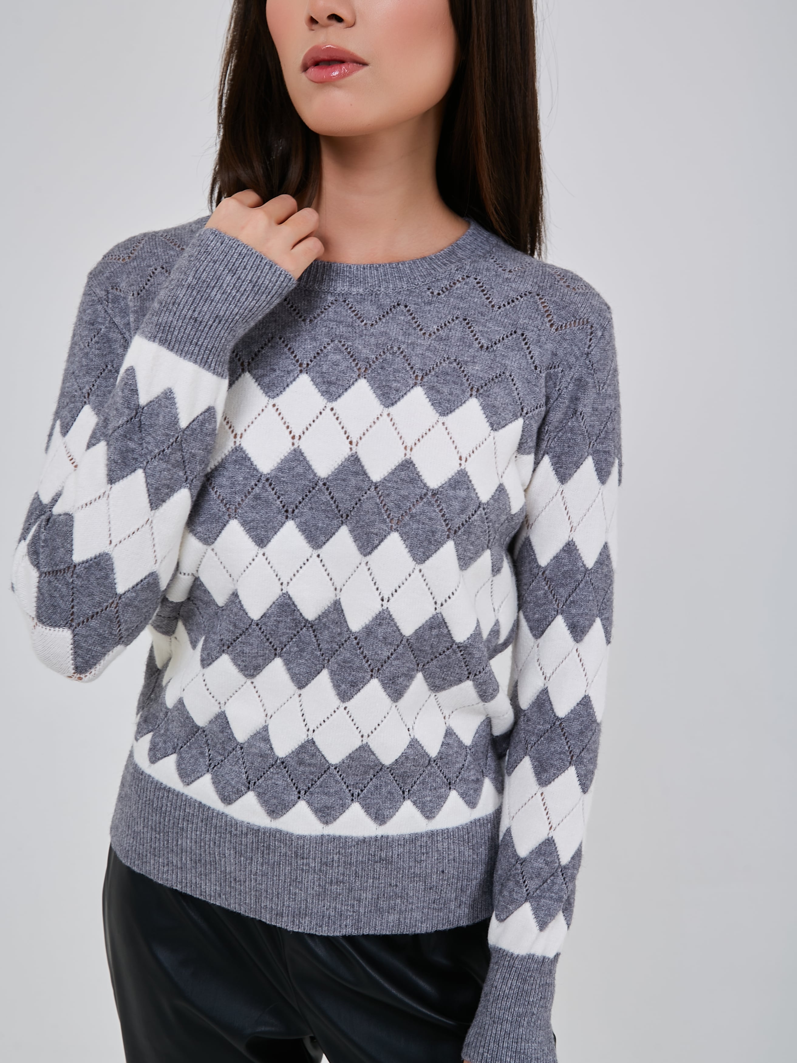 Ажурный свитер с узором в виде ромбов "Аргайл". Коллекция Осень-Зима 2024-2025. Капсула "Гостья из будущего".