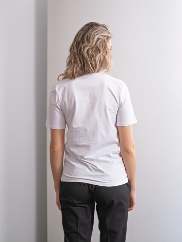 На сайте указаны российские размеры. Ткань: выполнена из 100% гладкого хлопка высокого качества. Крой: слегка приталенная модель, подчеркивающая достоинства фигуры. Имеет круглый вырез и втачной рукав-реглан. Футболка выполнена из гладкого, приятного телу хлопка, который дарит максимальный комфорт – не натирает и не раздражает кожу. Отделка: природный принт украшен золотистым калиброванным бисером, который служит дорогим акцентом всему образу. Сочетается с брюками, джинсами, юбками и шортами из ассортимента Stern.